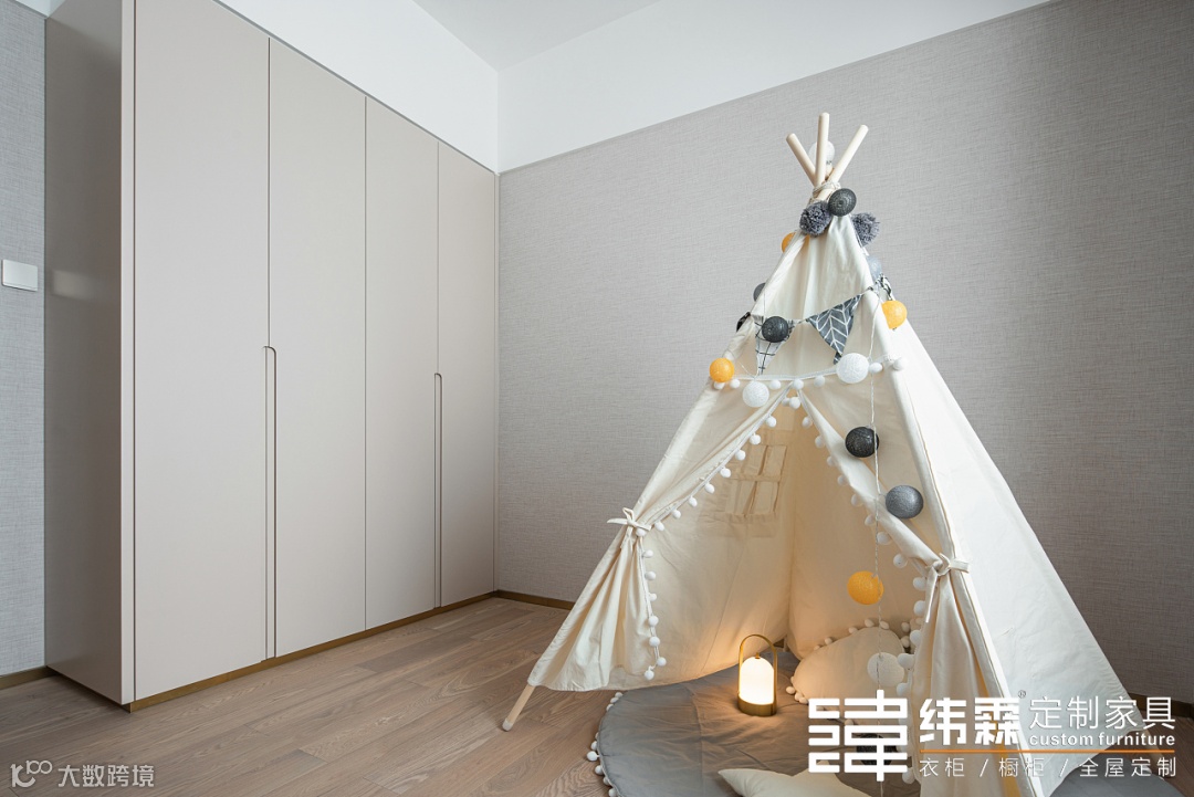 儿童房没有过多元素的参与,一顶造型可爱、充满童趣的米色帐篷是ta的私密游戏屋,柔和的灯光,点亮小小的梦想,在每一个安宁的夜里,编织起天马行空的梦。