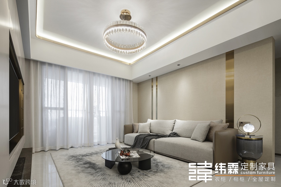 沙发选择了亲肤性强、舒适透气的材质,与背景墙同款的色系返璞归真,把材质中的艺术性展现的淋漓尽致。