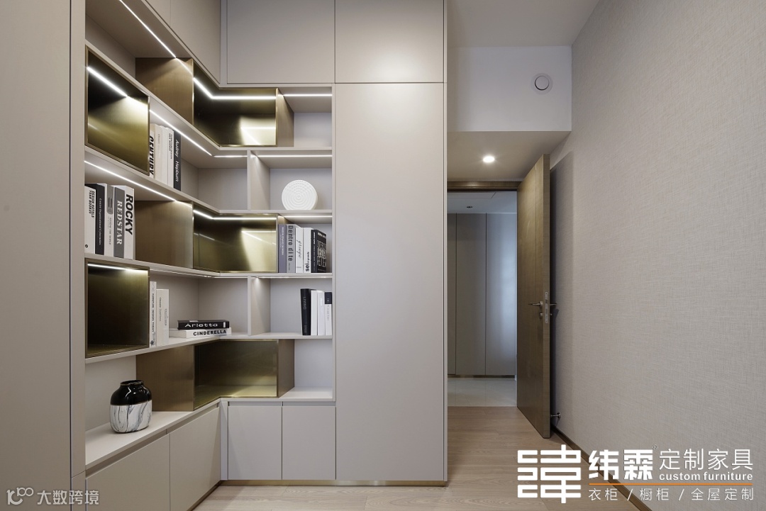 书籍是全世界的营养品,多功能房里设计了大面积的书籍收纳空间,顶层和底层的空间也得到了完美利用,为未来的亲子阅读,提供了良好的储备。