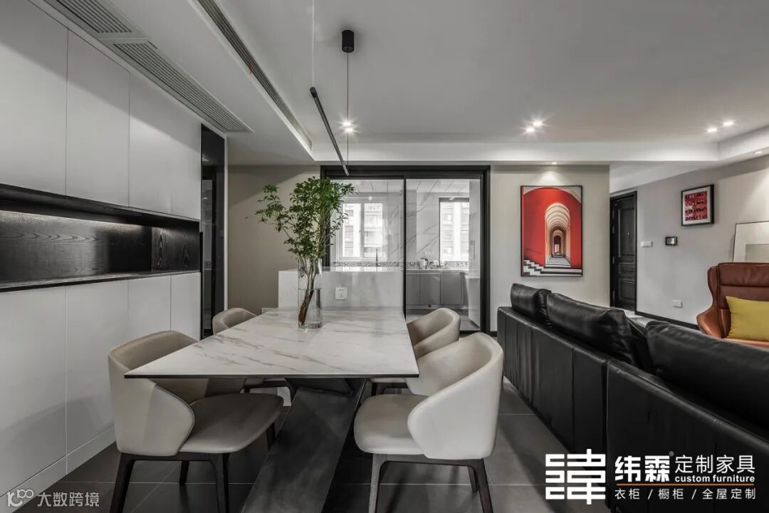 餐厅形式上化繁为简,整个餐厅空间采用浓淡结合的同色系