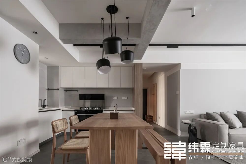主人不常在家做饭,开放式厨房是一个明智的选择、让空间变得更加通透,厨房也会看着比较整洁美观;