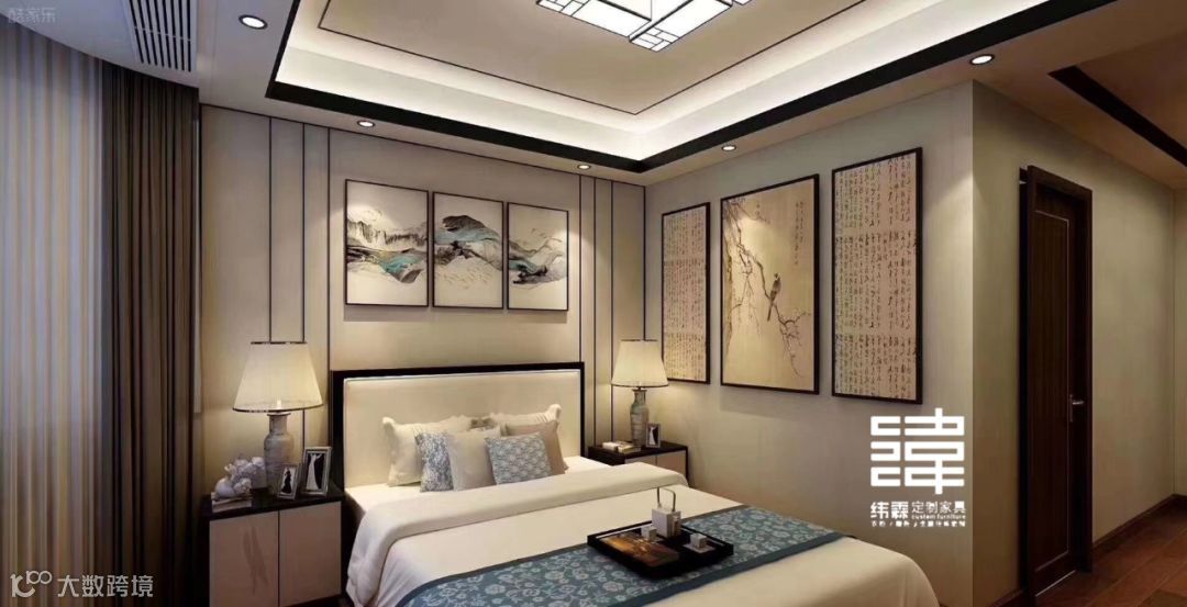 墙上挂的挂画与灯饰就是整个房间的点睛之笔,一下就带来了中式的感觉,还有精致的小饰品、小摆件,从细节处展现中式的感觉。