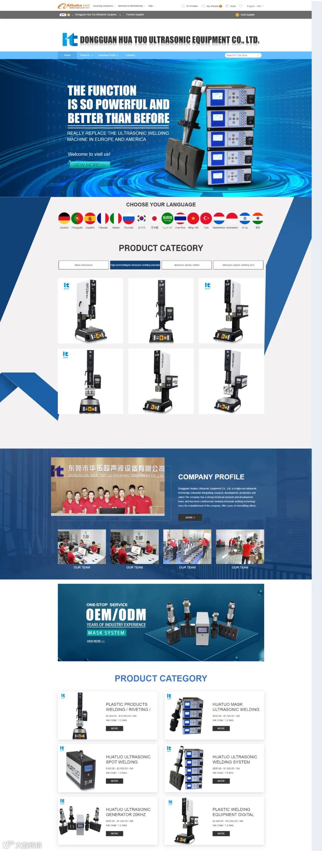 国际站覆盖华拓超声波设备有限公司所研发、生产、销售的产品,自动追频数字超声波发声器、超声波焊接设备、超声波模具。