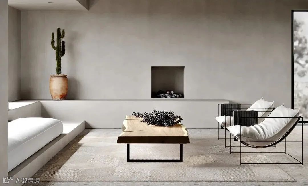 侘寂的设计趋势一种冷淡的折衷主义,以中性色调为主,带有着原生态的纹理或质感。