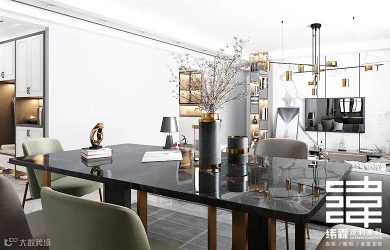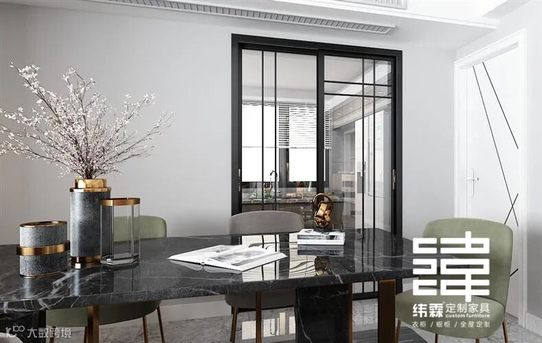 餐厅空间部分在厨房门口外面沙发背后,吃饭的同时,也可以直接看到客厅那边的电视,惬意的生活呀~