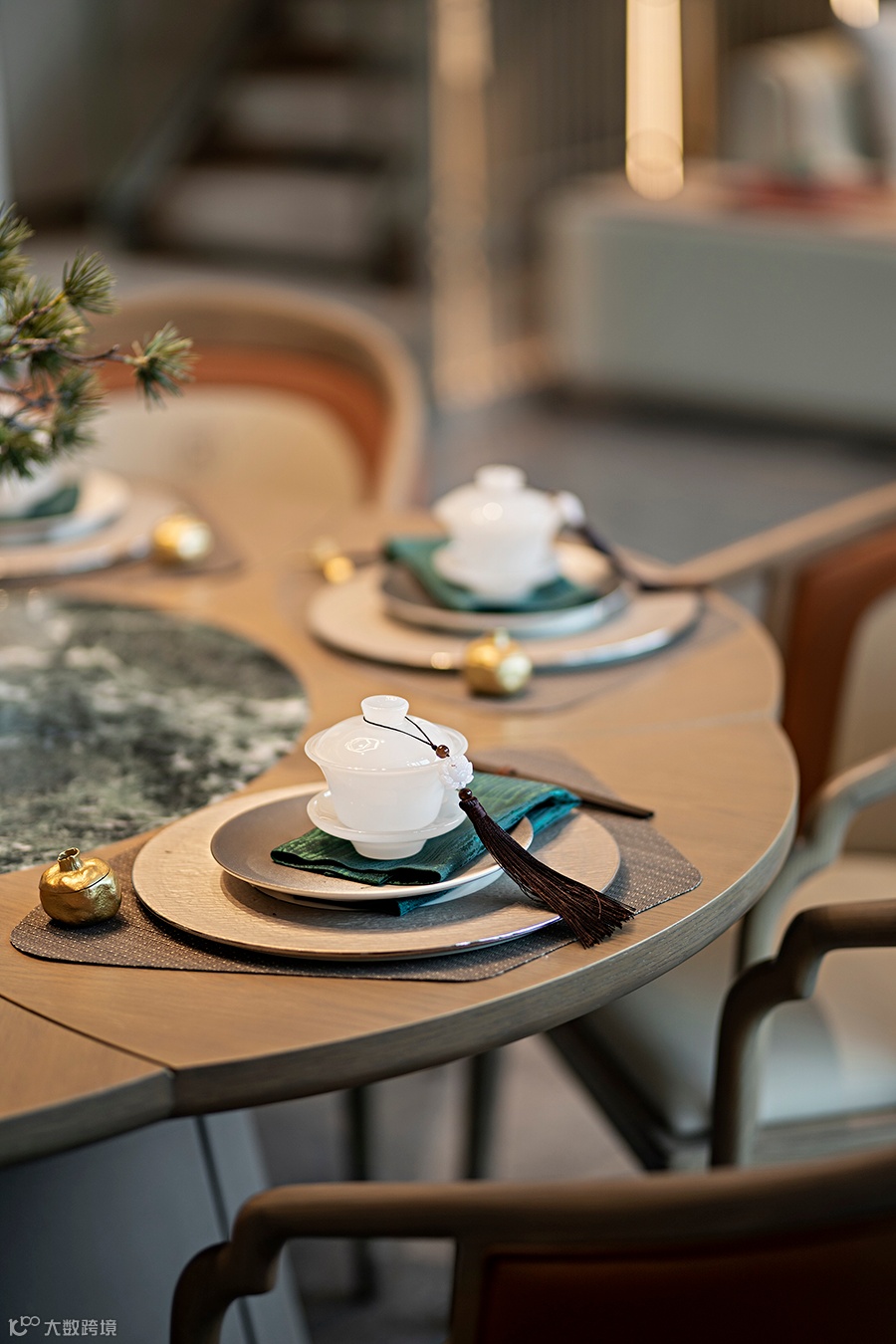 设计师以在地文化为设计基韵,将山城的悠然之姿与宋式美学相融,于淡香古韵间点染出一幅清逸素雅的温婉画境,以当代语言演绎传统东方美学,宋代文人雅士的生活情景尽数复刻于此。