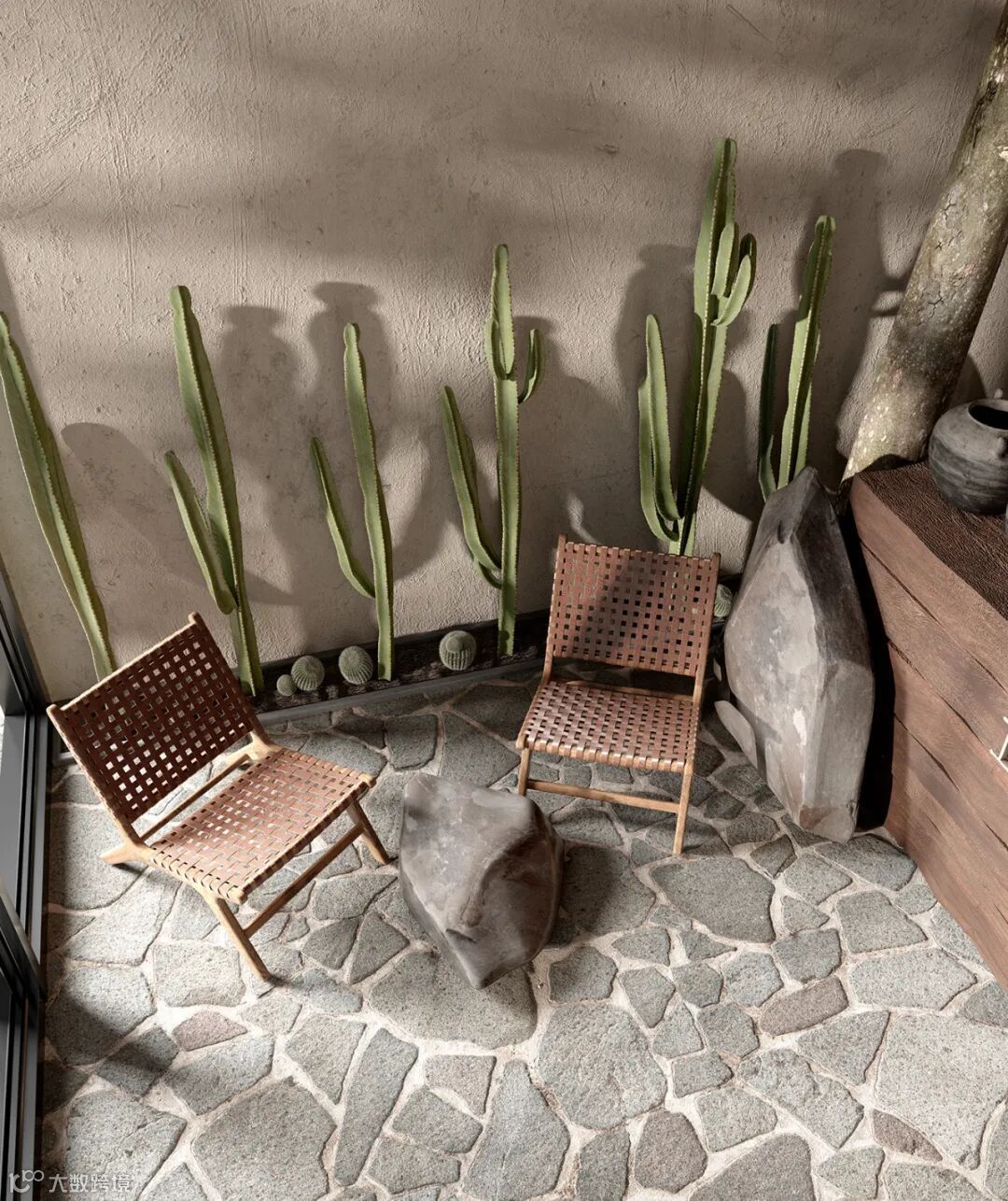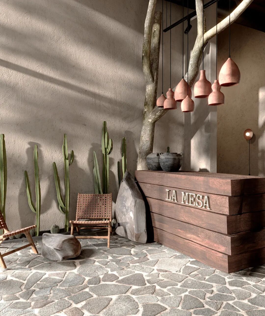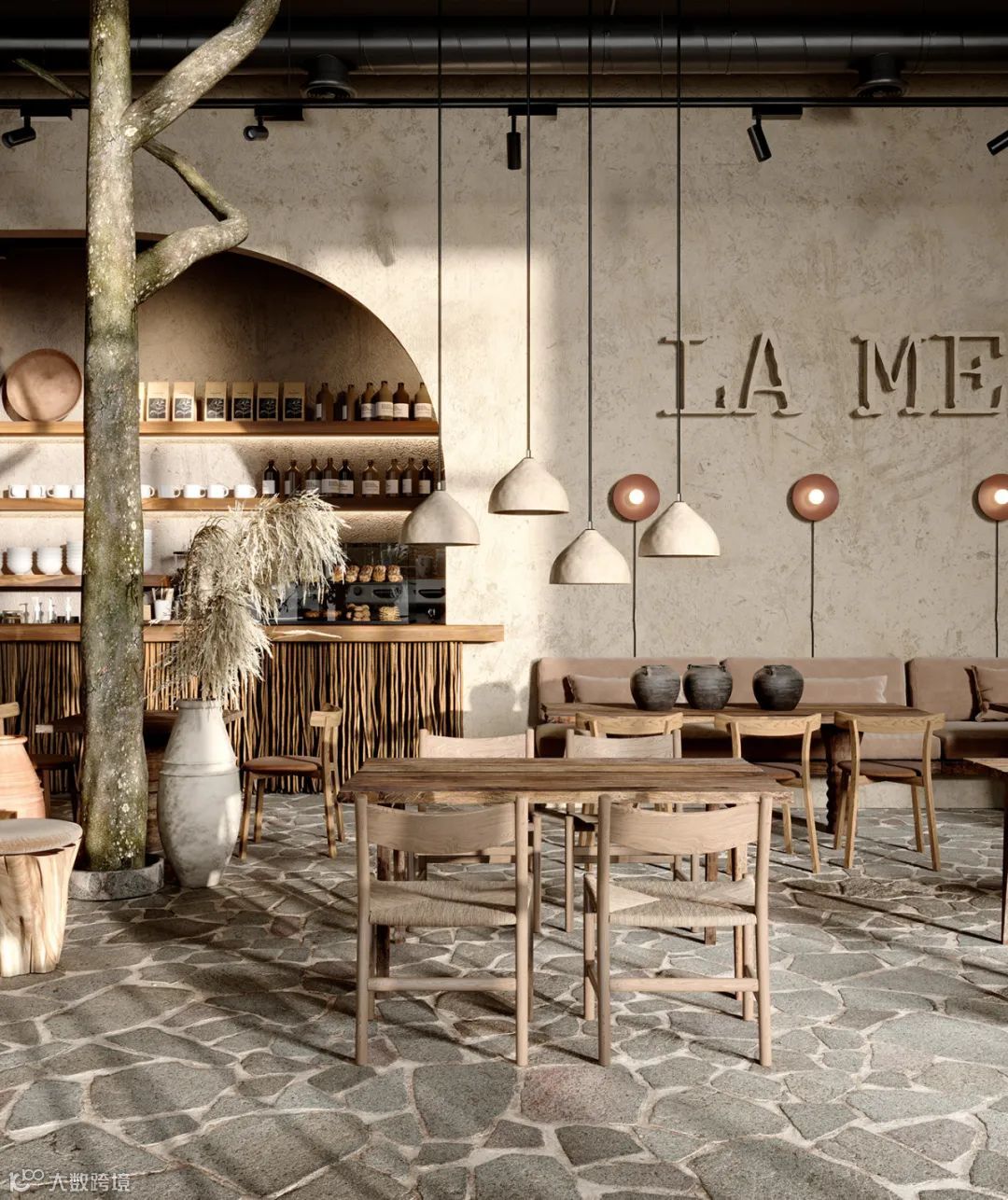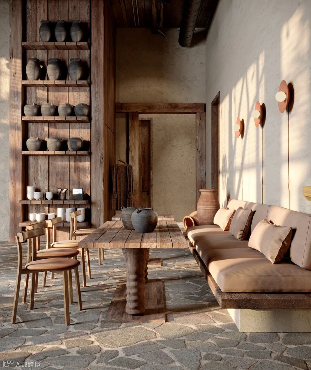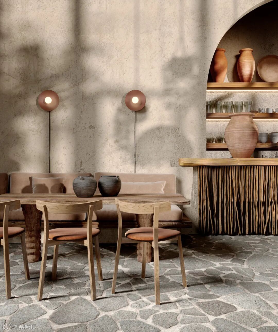 细腻与粗糙感相辉映衬,交织出空间的层次感,更凸显出原始恬静之美。