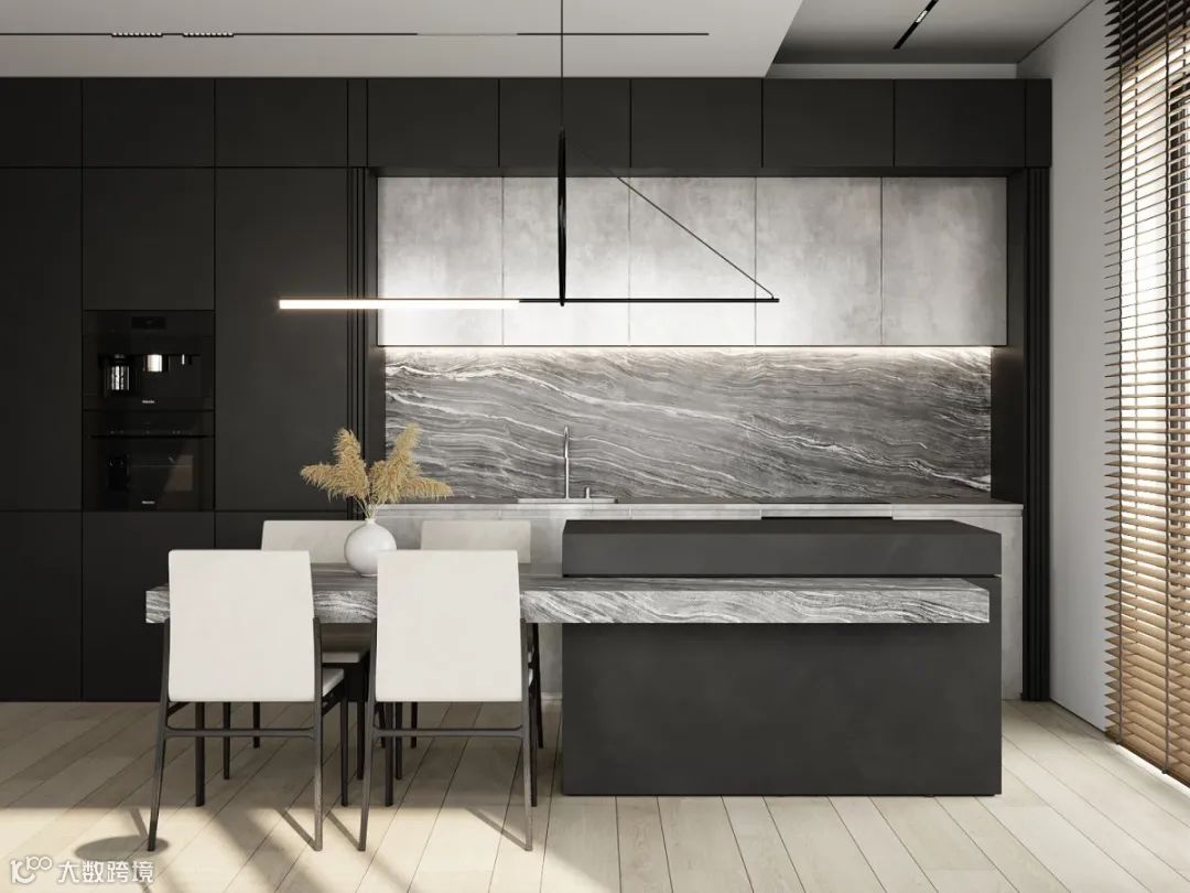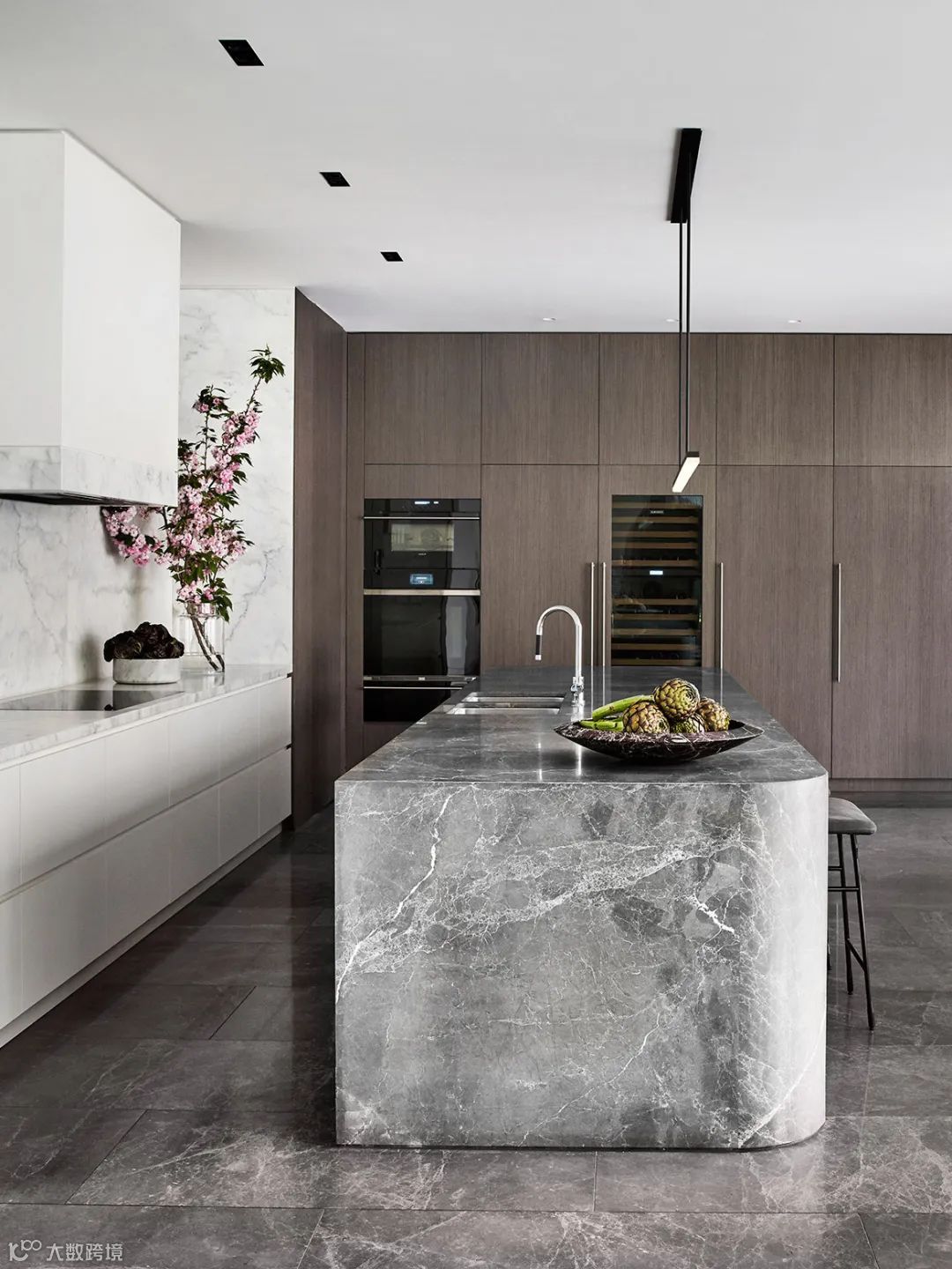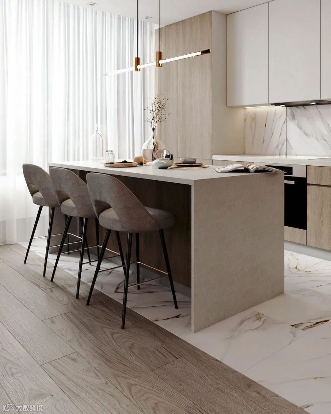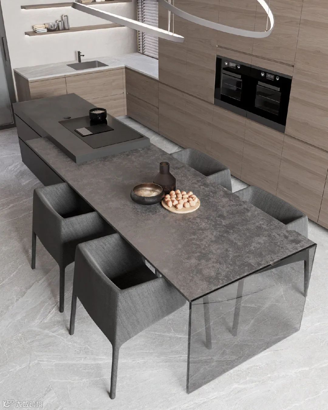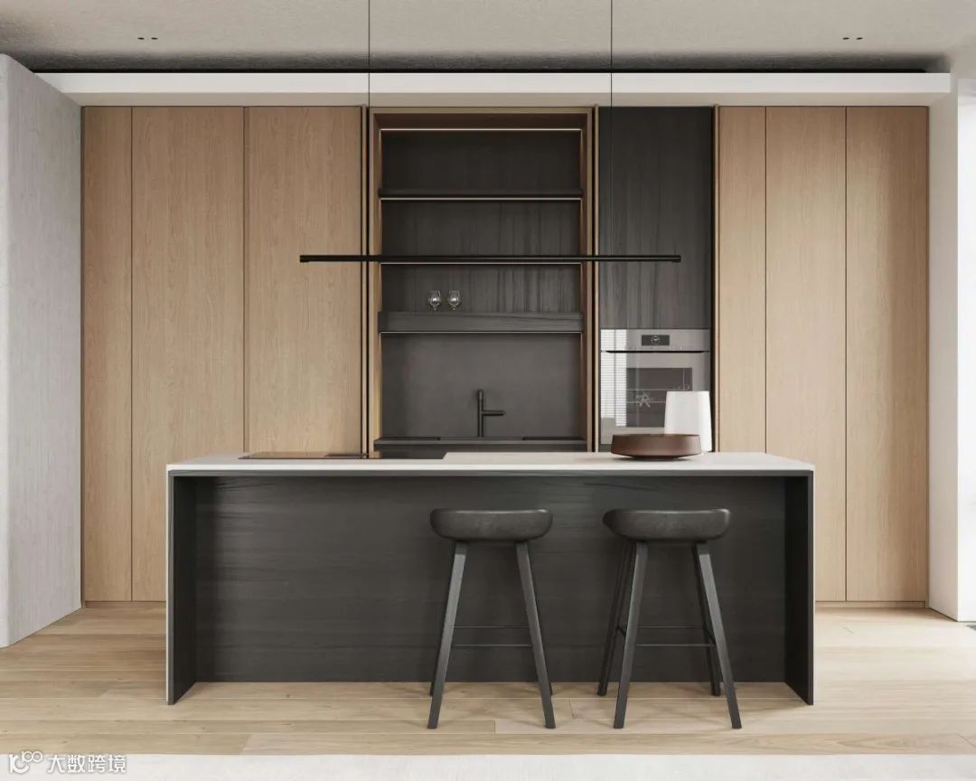 岛台的设计越来越被年轻一代所欢迎,它能延伸厨房面积制作轻食,也是家庭沟通交流重要平台。