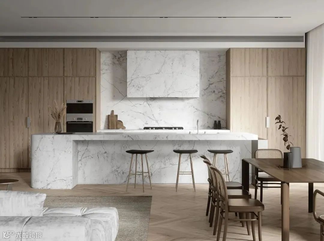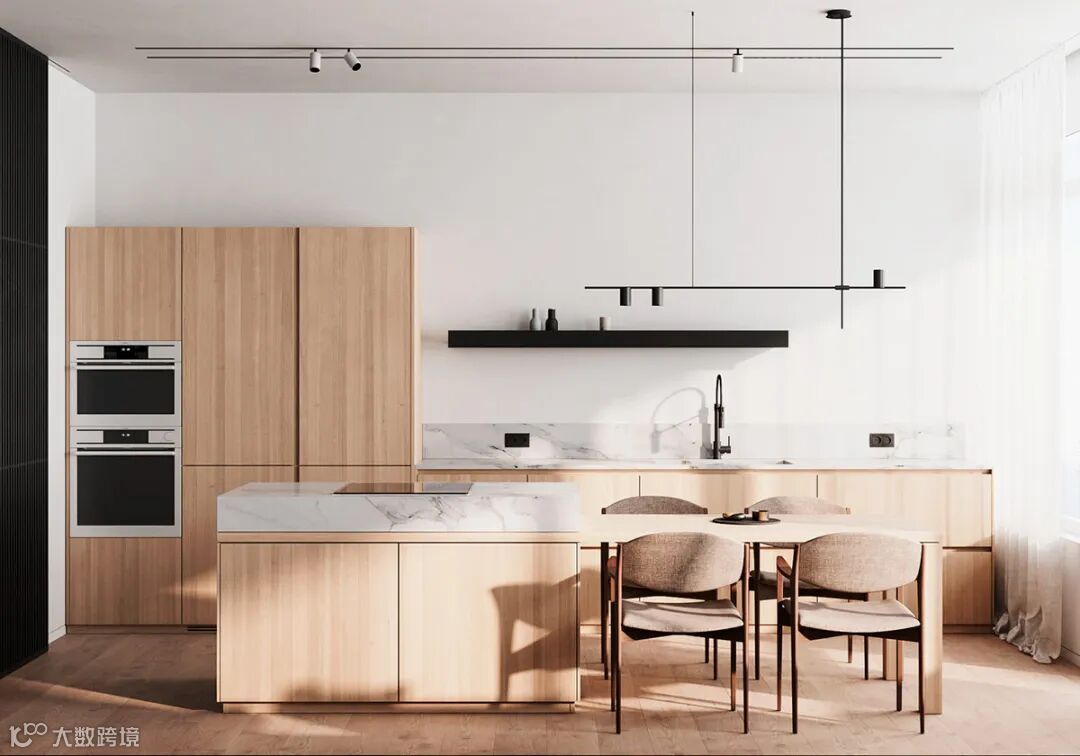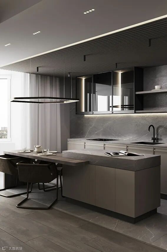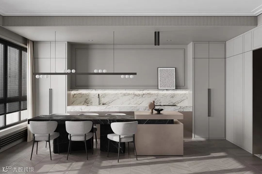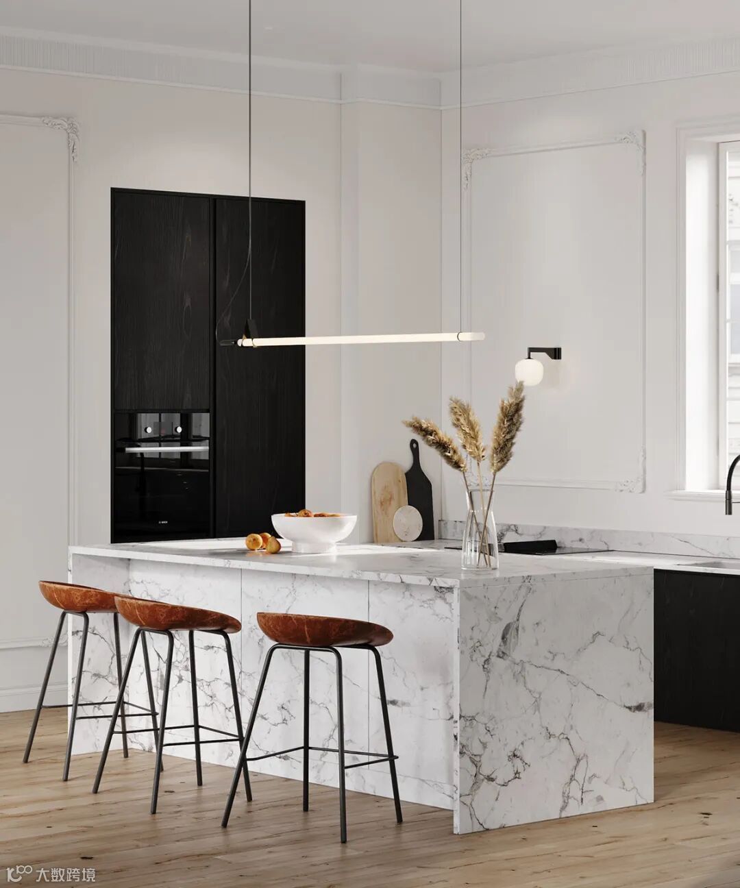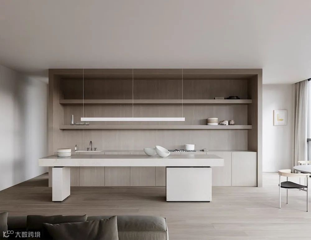 岛台的设计越来越被年轻一代所欢迎,它能延伸厨房面积制作轻食,也是家庭沟通交流重要平台。