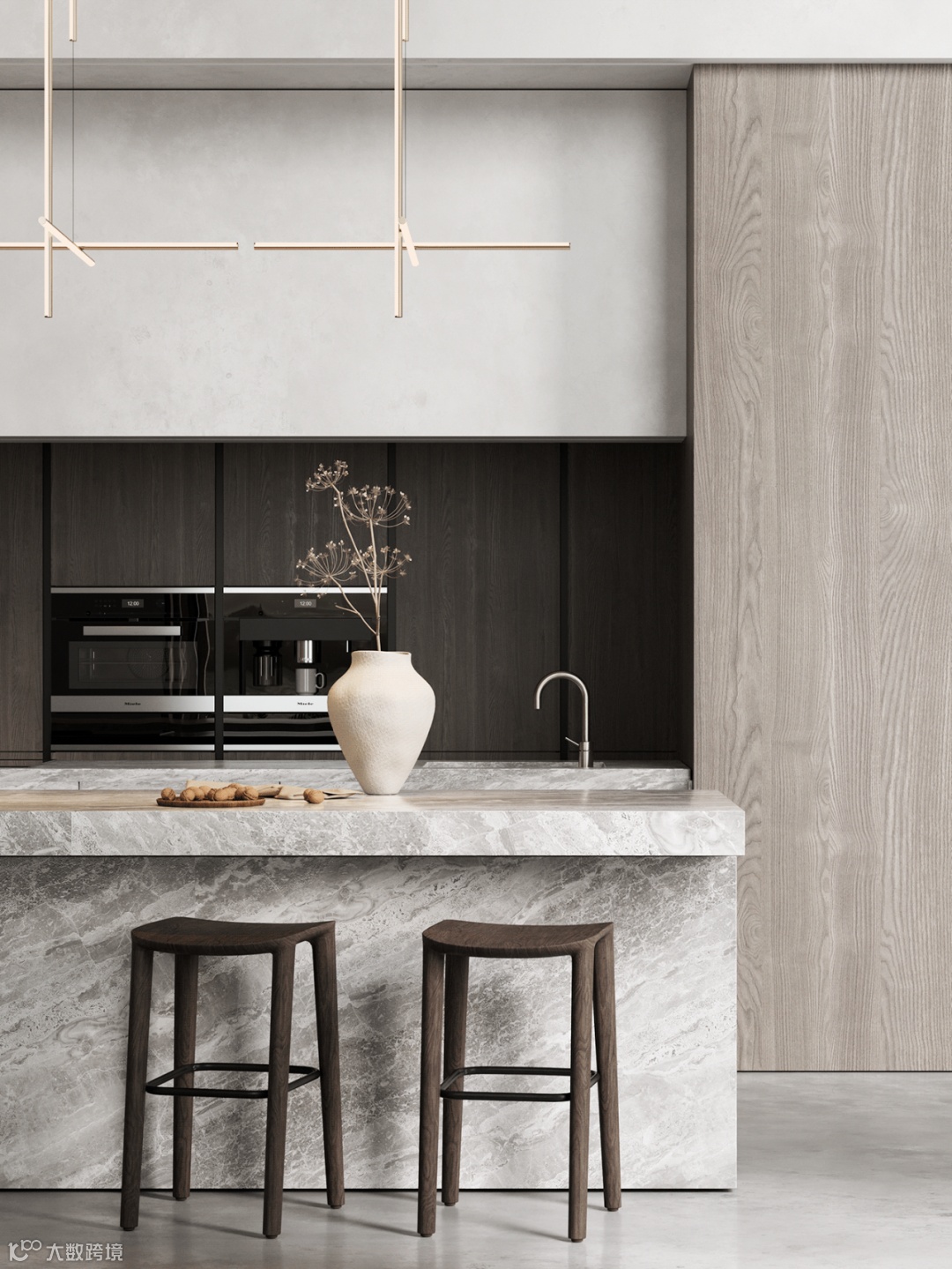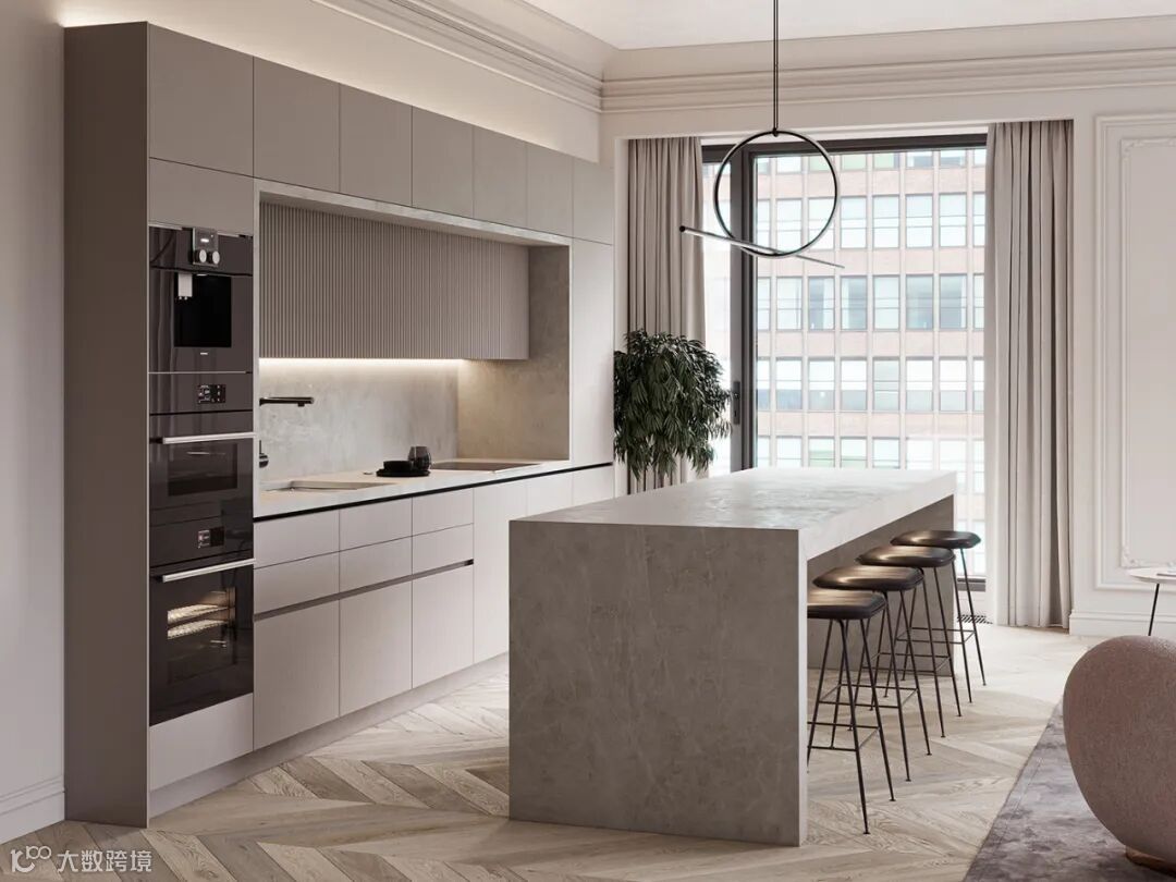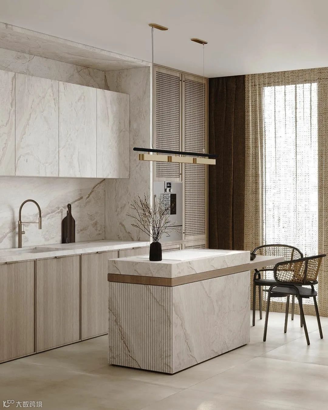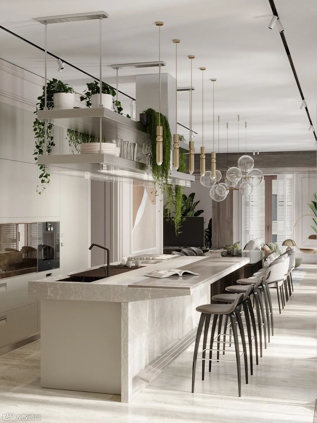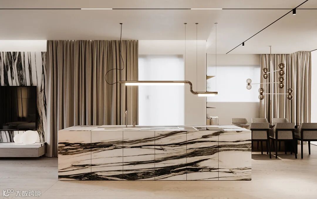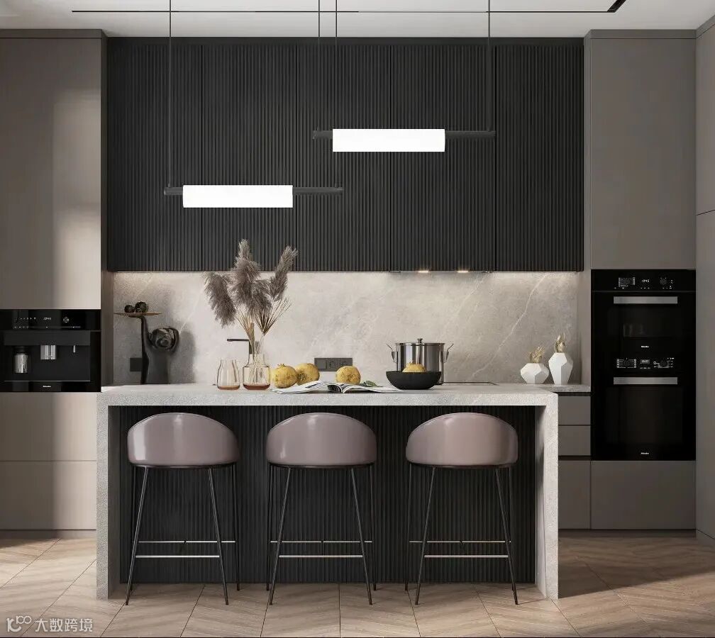 岛台的设计越来越被年轻一代所欢迎,它能延伸厨房面积制作轻食,也是家庭沟通交流重要平台。