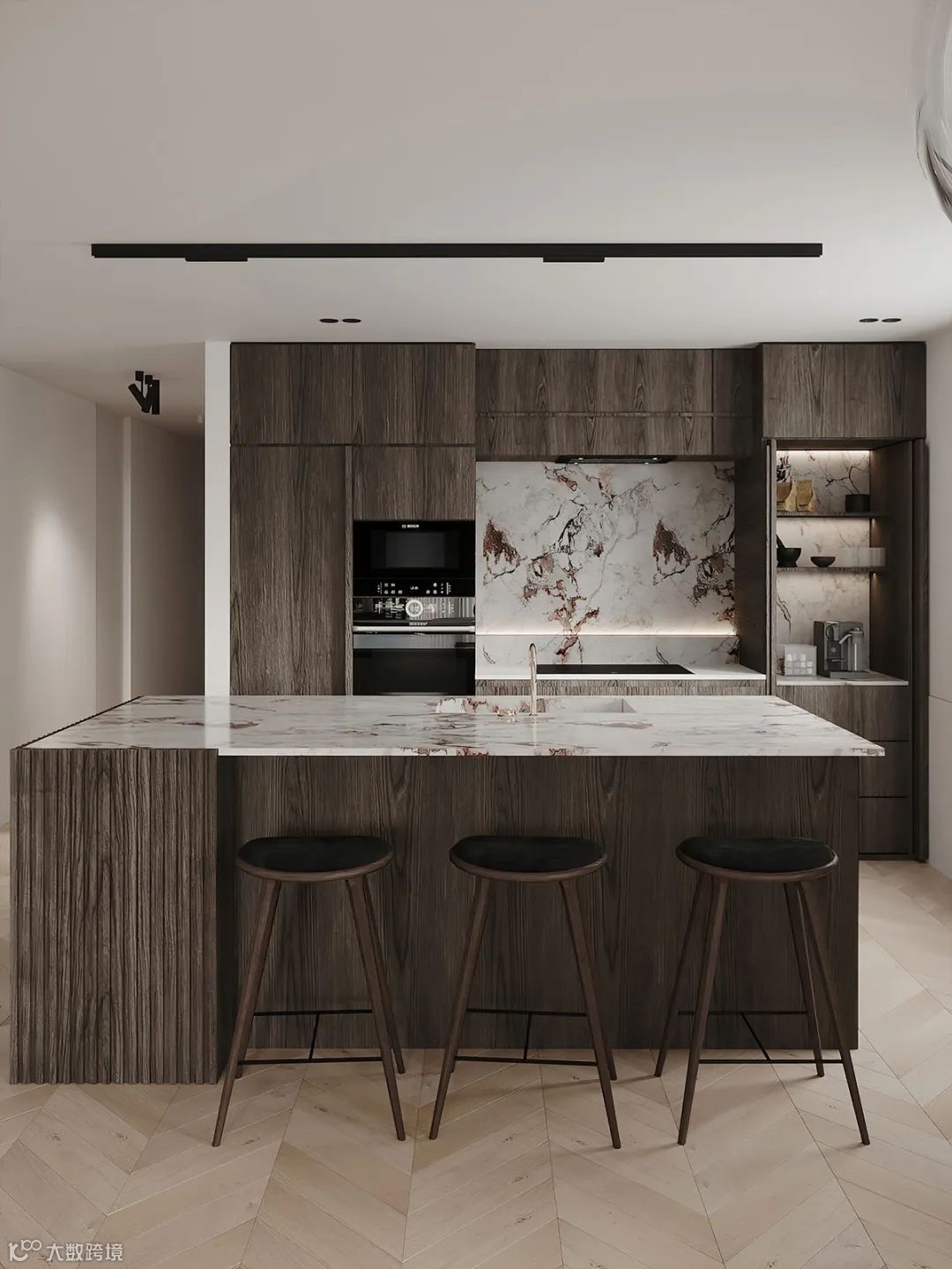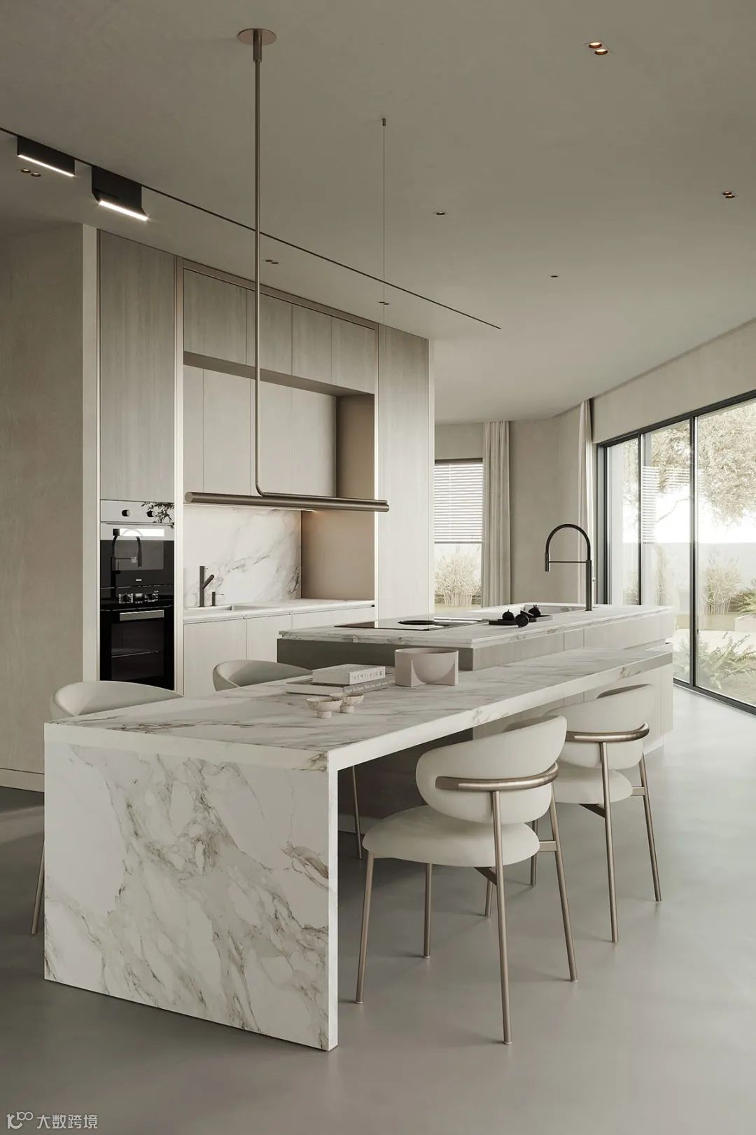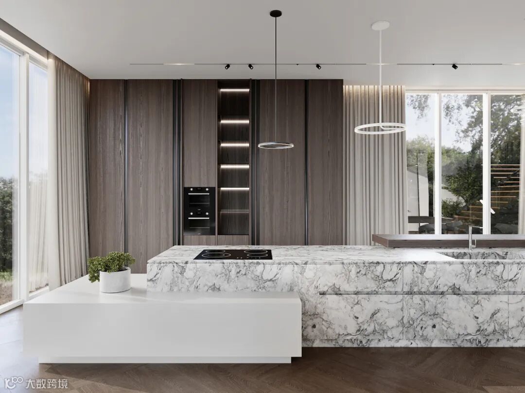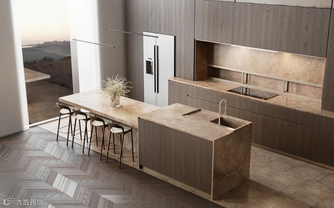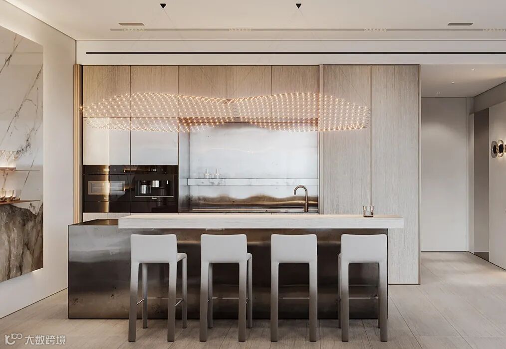 岛台的设计越来越被年轻一代所欢迎,它能延伸厨房面积制作轻食,也是家庭沟通交流重要平台。