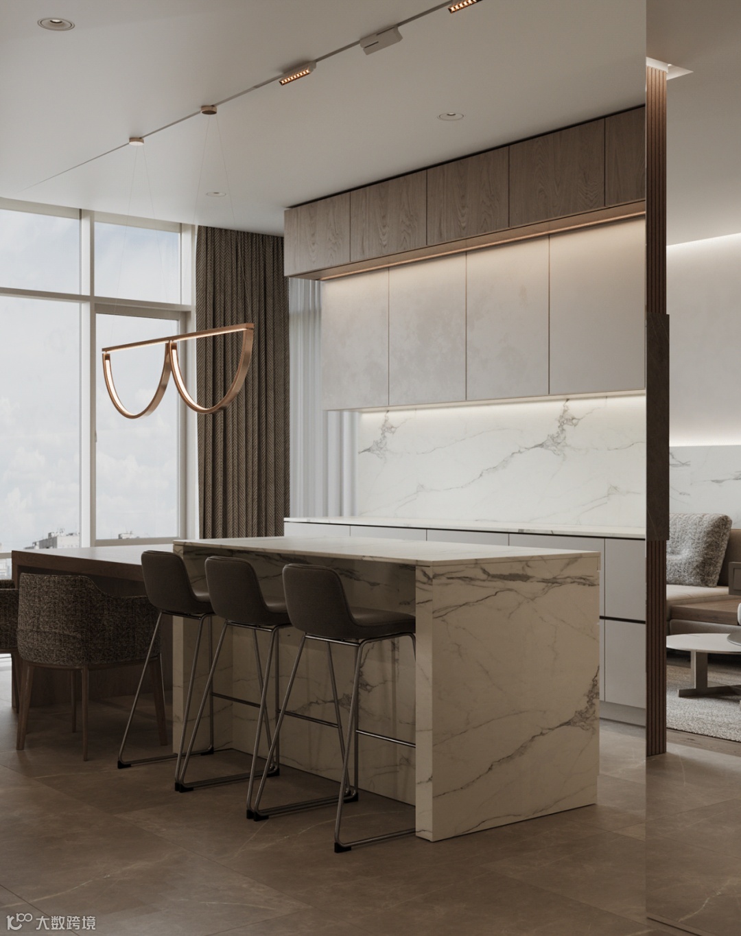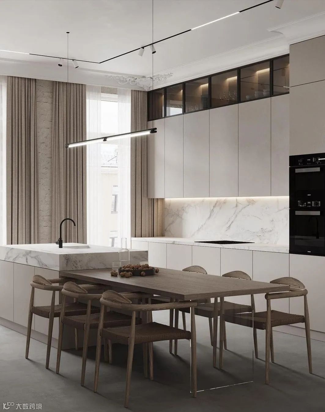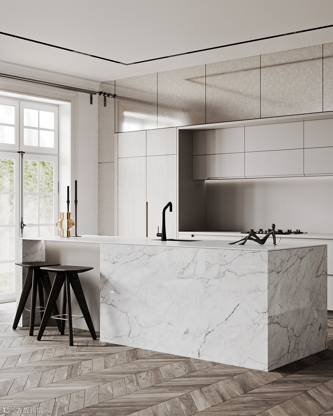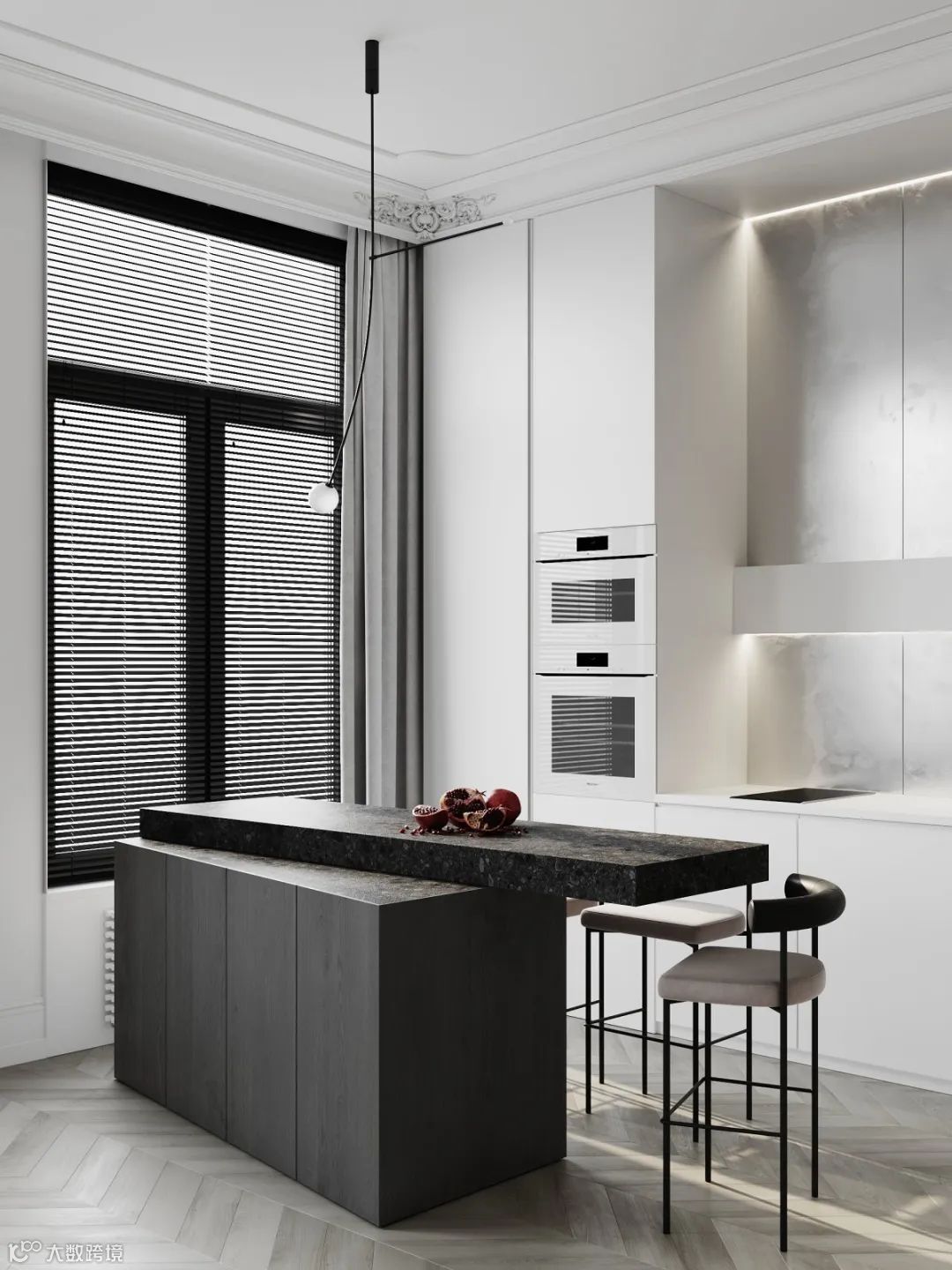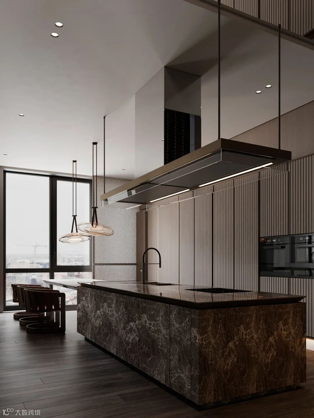 岛台的设计越来越被年轻一代所欢迎,它能延伸厨房面积制作轻食,也是家庭沟通交流重要平台。