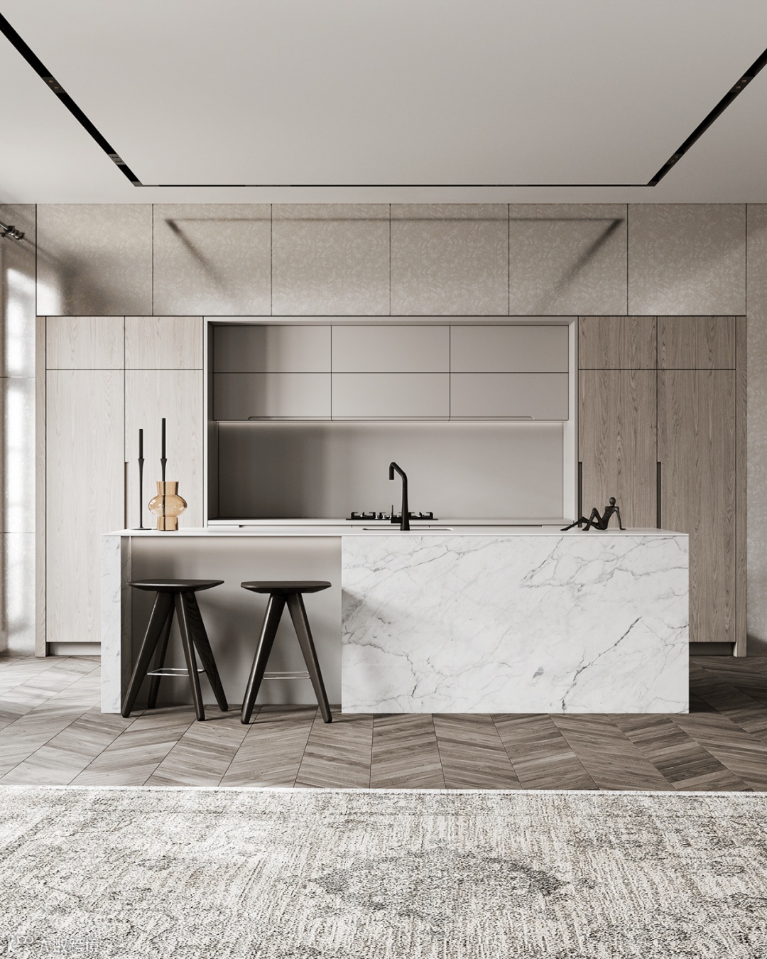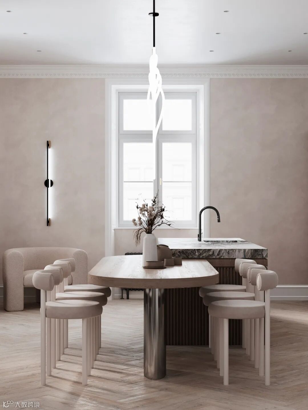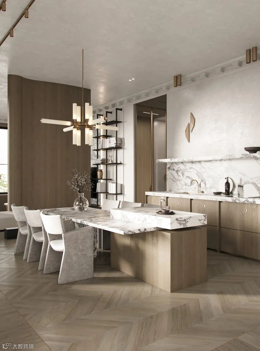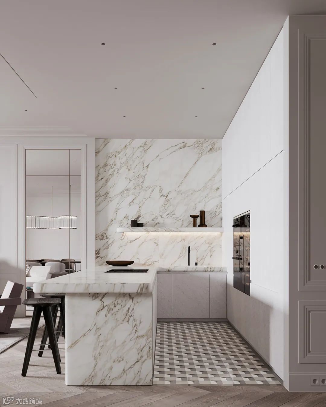 岛台的设计越来越被年轻一代所欢迎,它能延伸厨房面积制作轻食,也是家庭沟通交流重要平台。