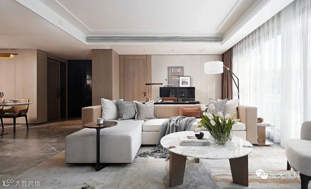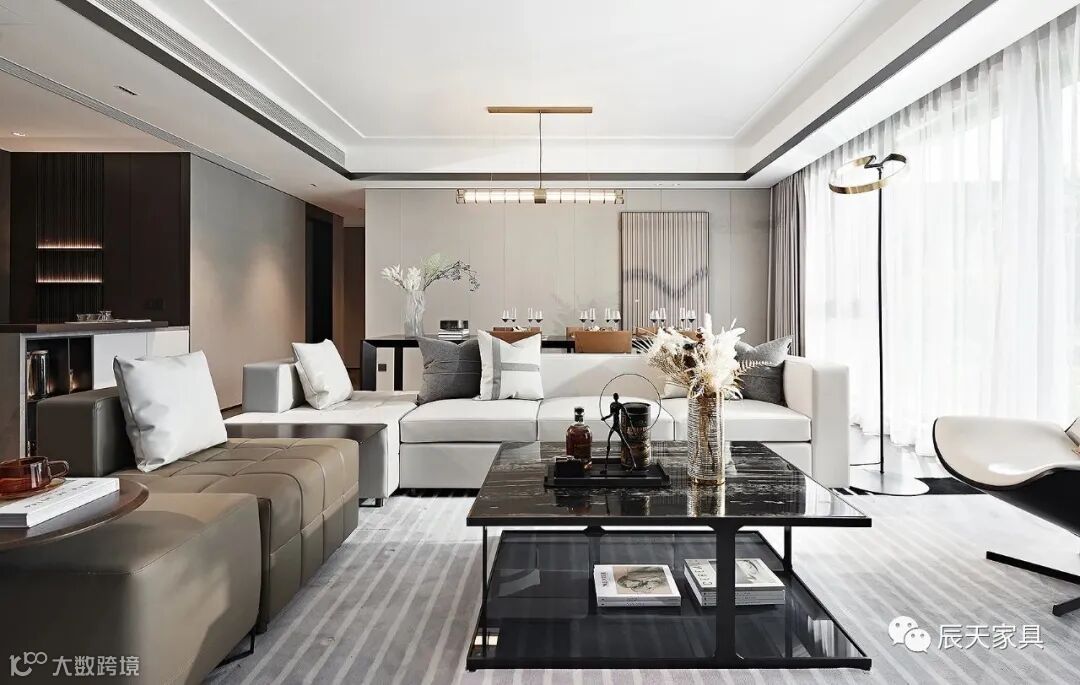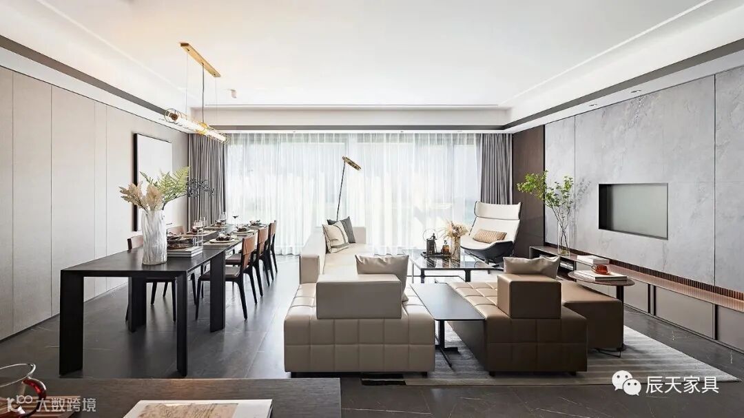 富有光泽的大理石、雅奢简约的皮质、柔软素雅的布艺,共同组合出丰富细腻的肌理层次,贯连起生活的仪式感。