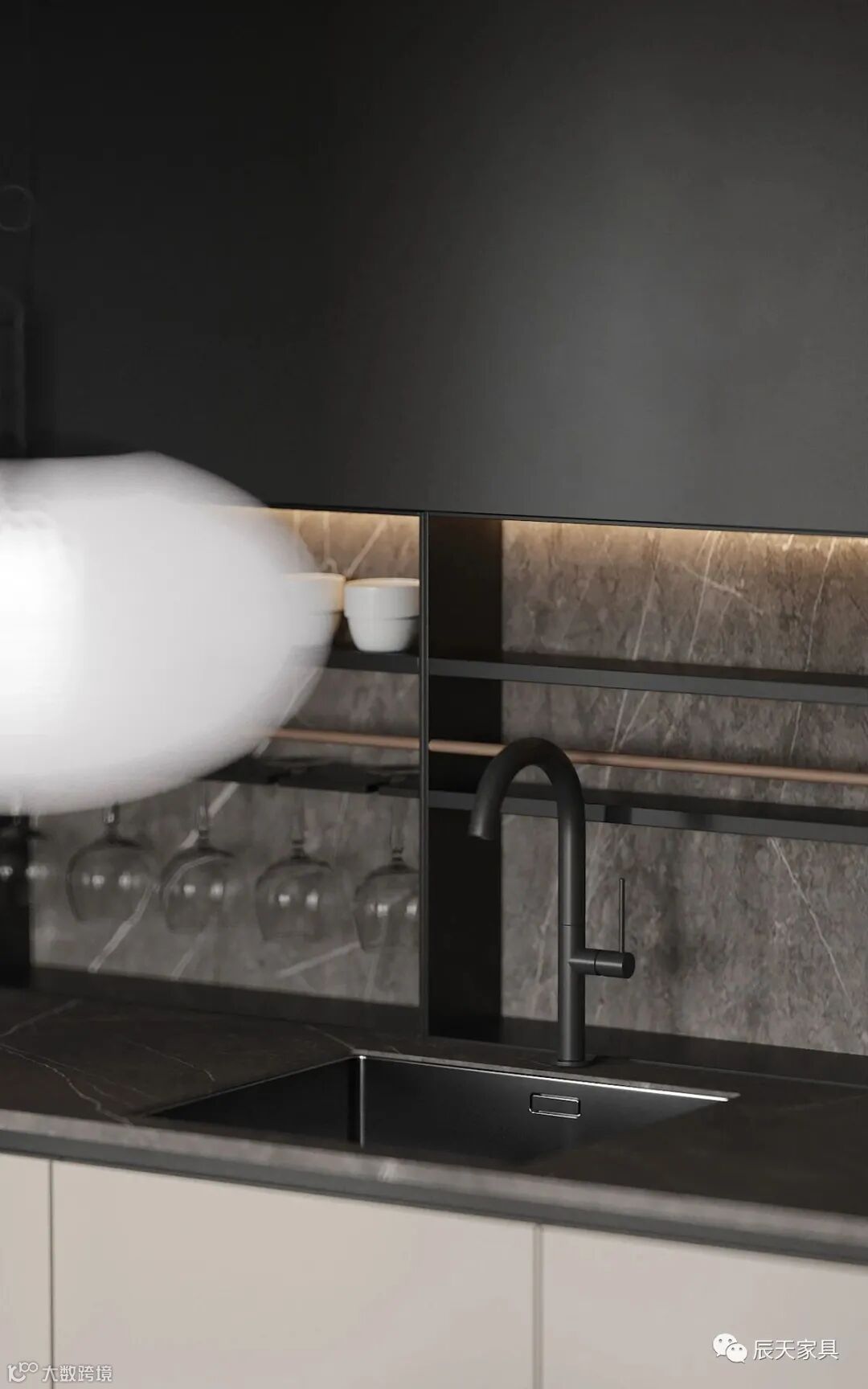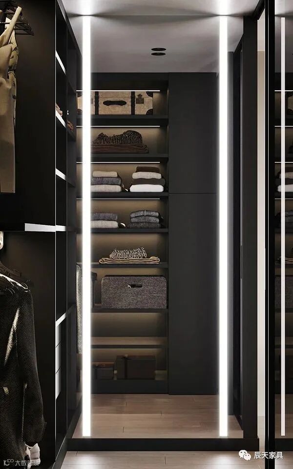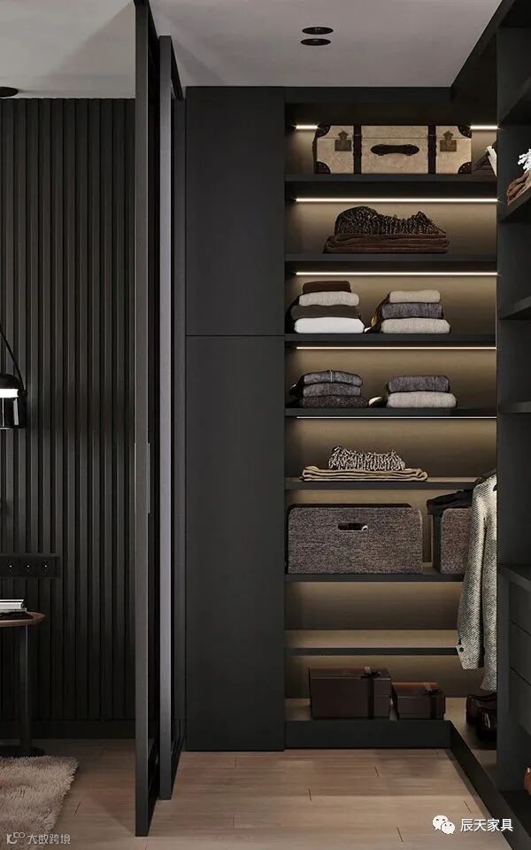 注重设计感和生活品质,自身的审美和品味也很好。设计师特别设计了衣帽间,方便在家穿搭衣服。整体以黑色系为主,不容易过时,而且与屋主本身的气质完美融合。