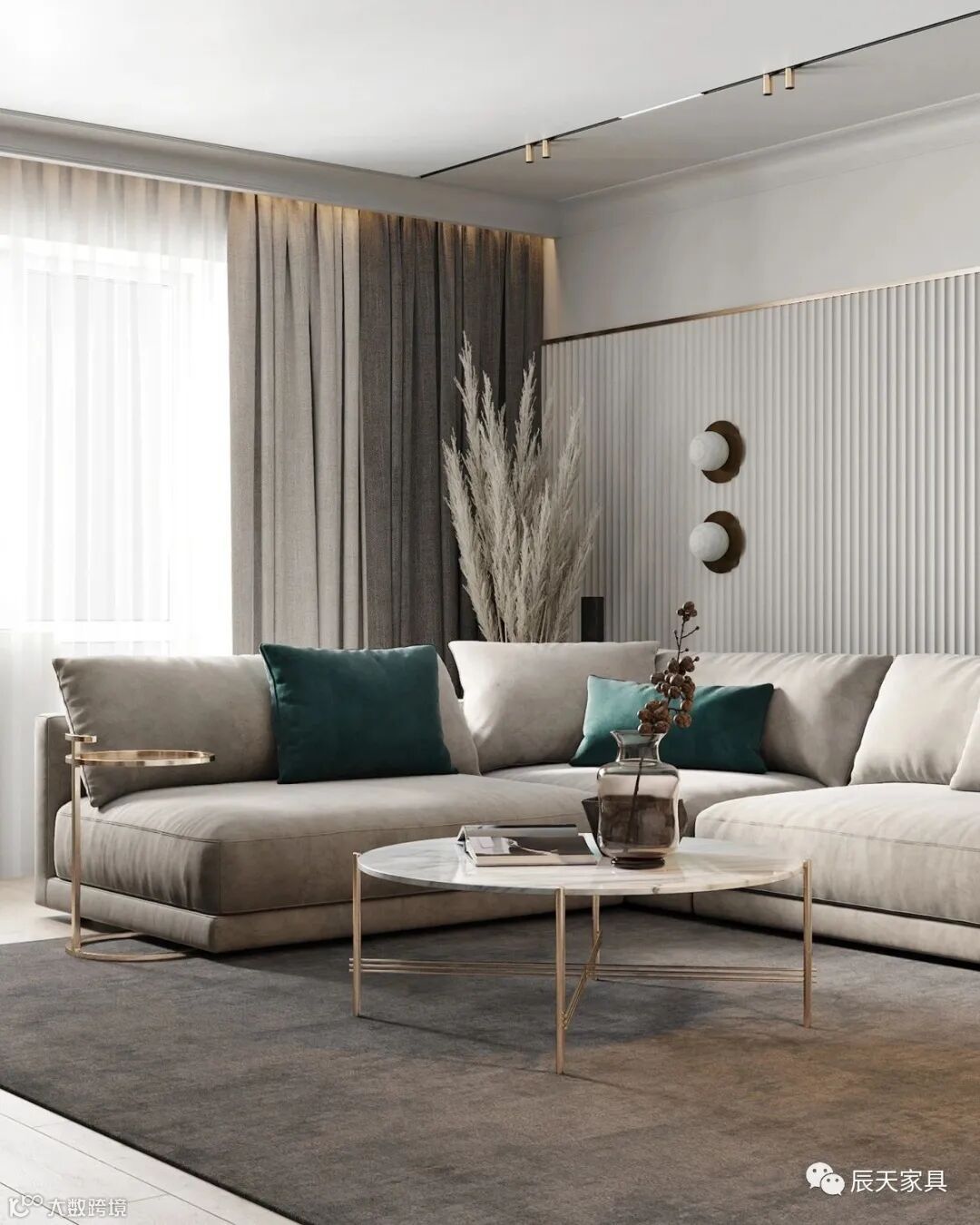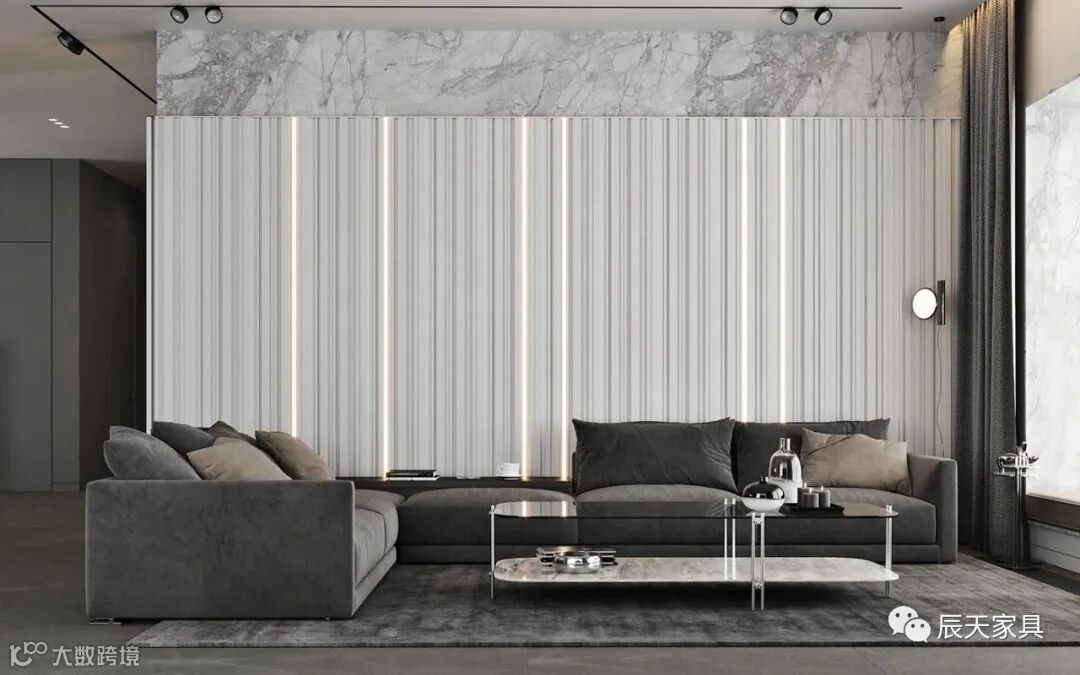 这套住宅,设计师以简约轻奢的风格设计了内部装饰,简洁的线条里面融入一些金属的线条和石材的勾勒,以及对于墙面的处理,色彩的设计以及材质的搭配让整个空间更为精致舒适。