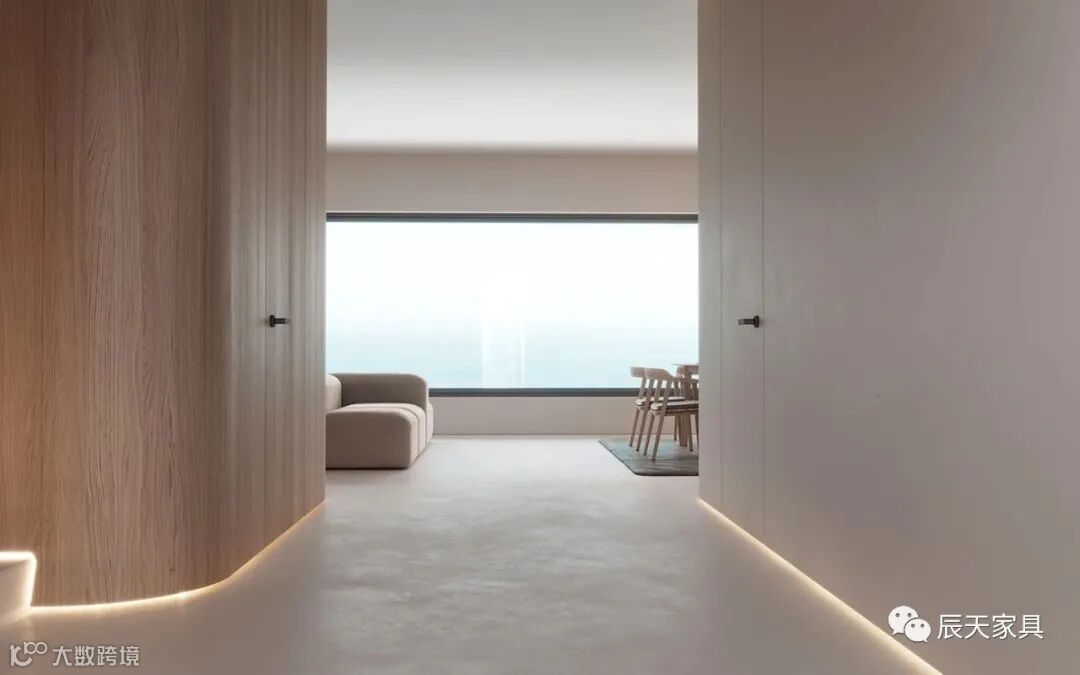 在杏灰色极简空间中,柔和的光感,以优雅的弧线取代生硬的墙体。通透大窗光线充足,展现了一个宁静空灵的世界,在官感上透出源源不断的艺术气息。