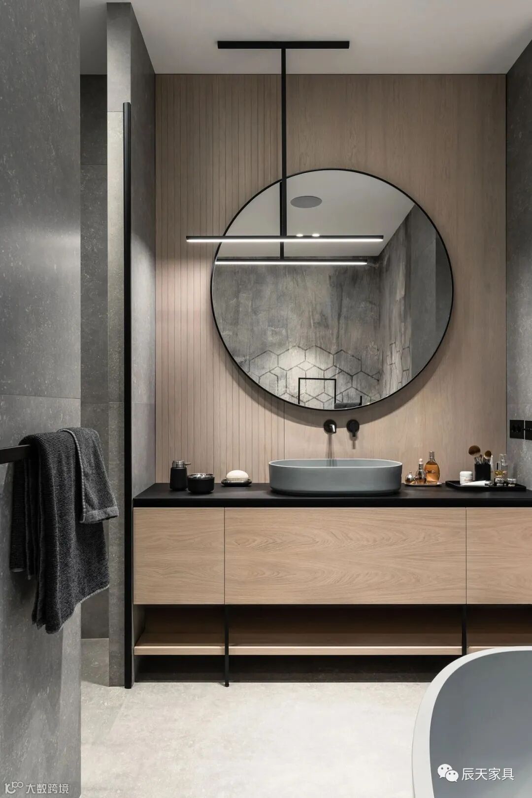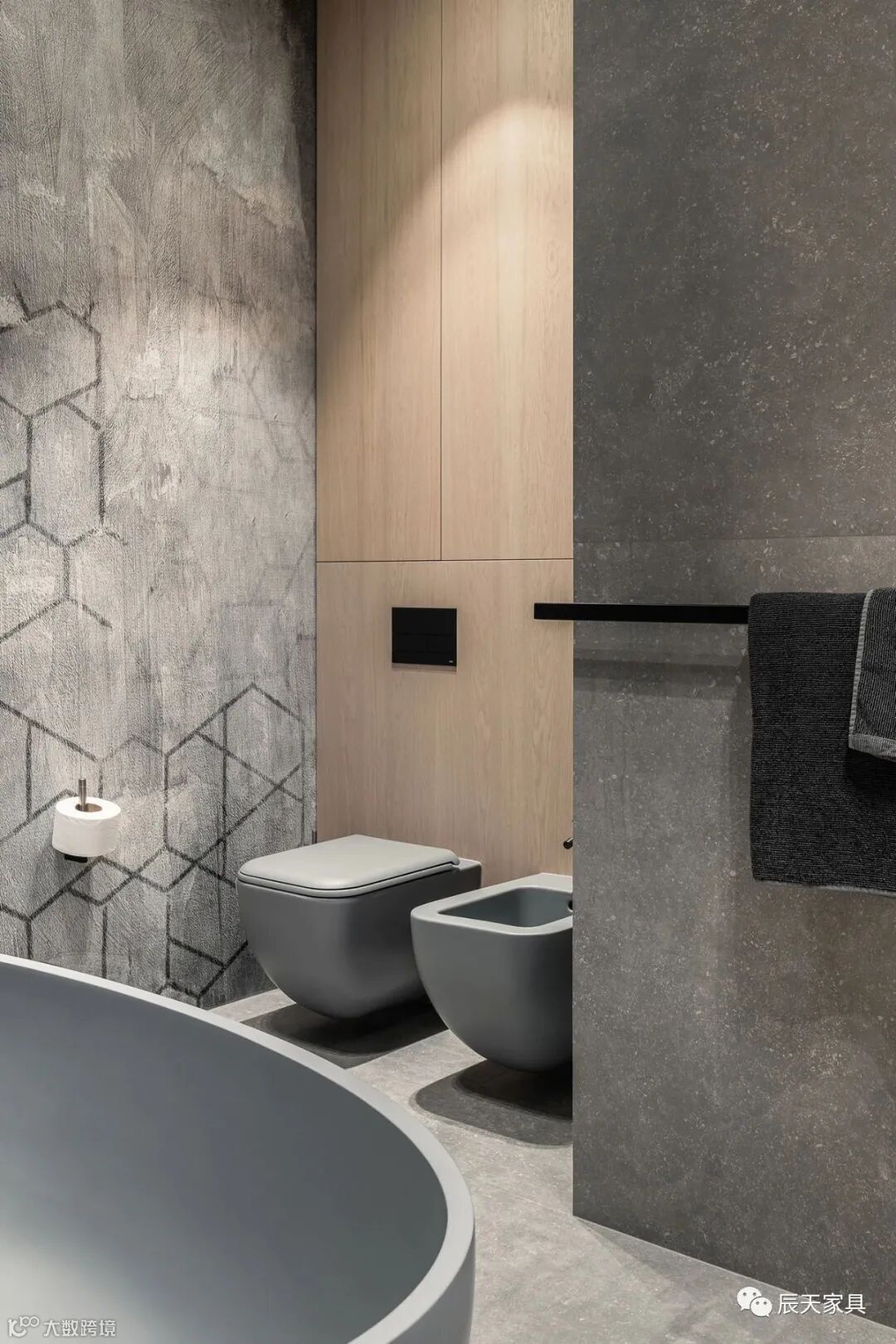 灰色卫生间,很有肌理感,搭配很有艺术气氛的灯,所以看上去并不会显得特别的冷,给人的感觉很纯净自然也不乏现代时尚质感。
