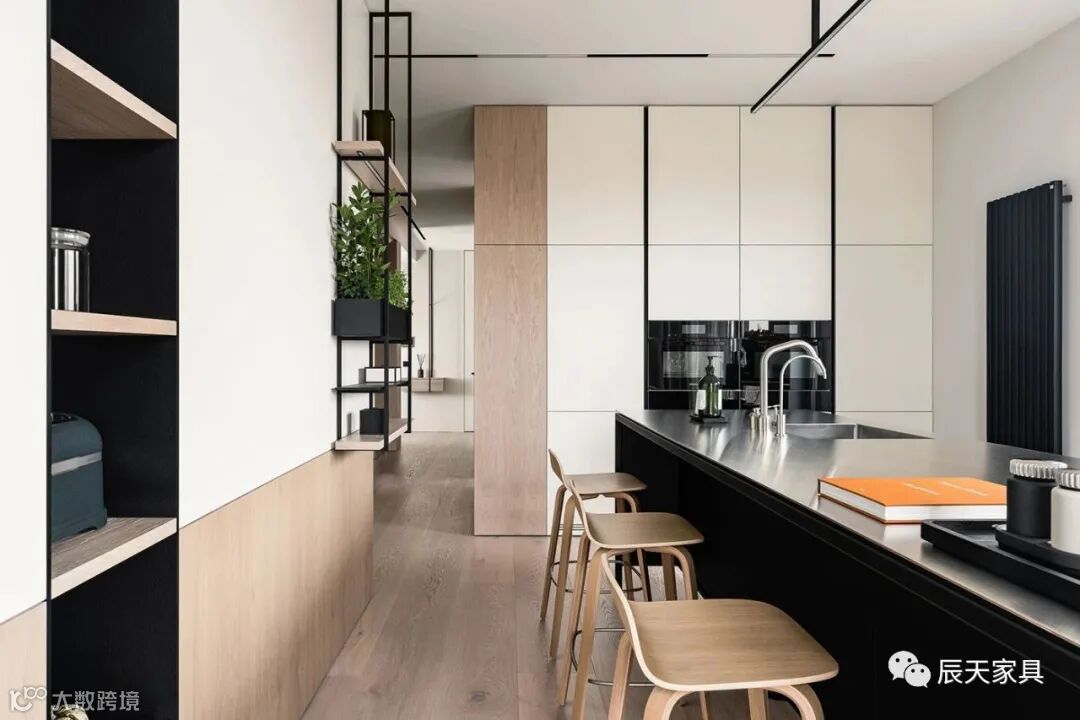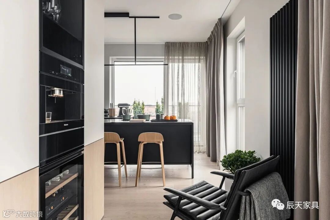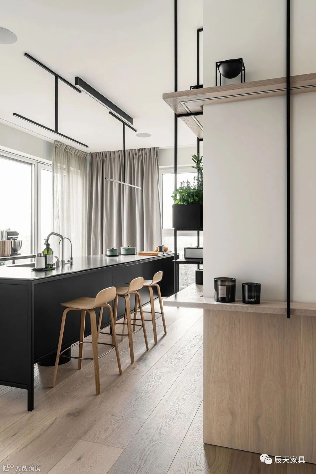 厨房设计主要从便捷性与实用性出发,黑色的岛台可满足多功能的需求。