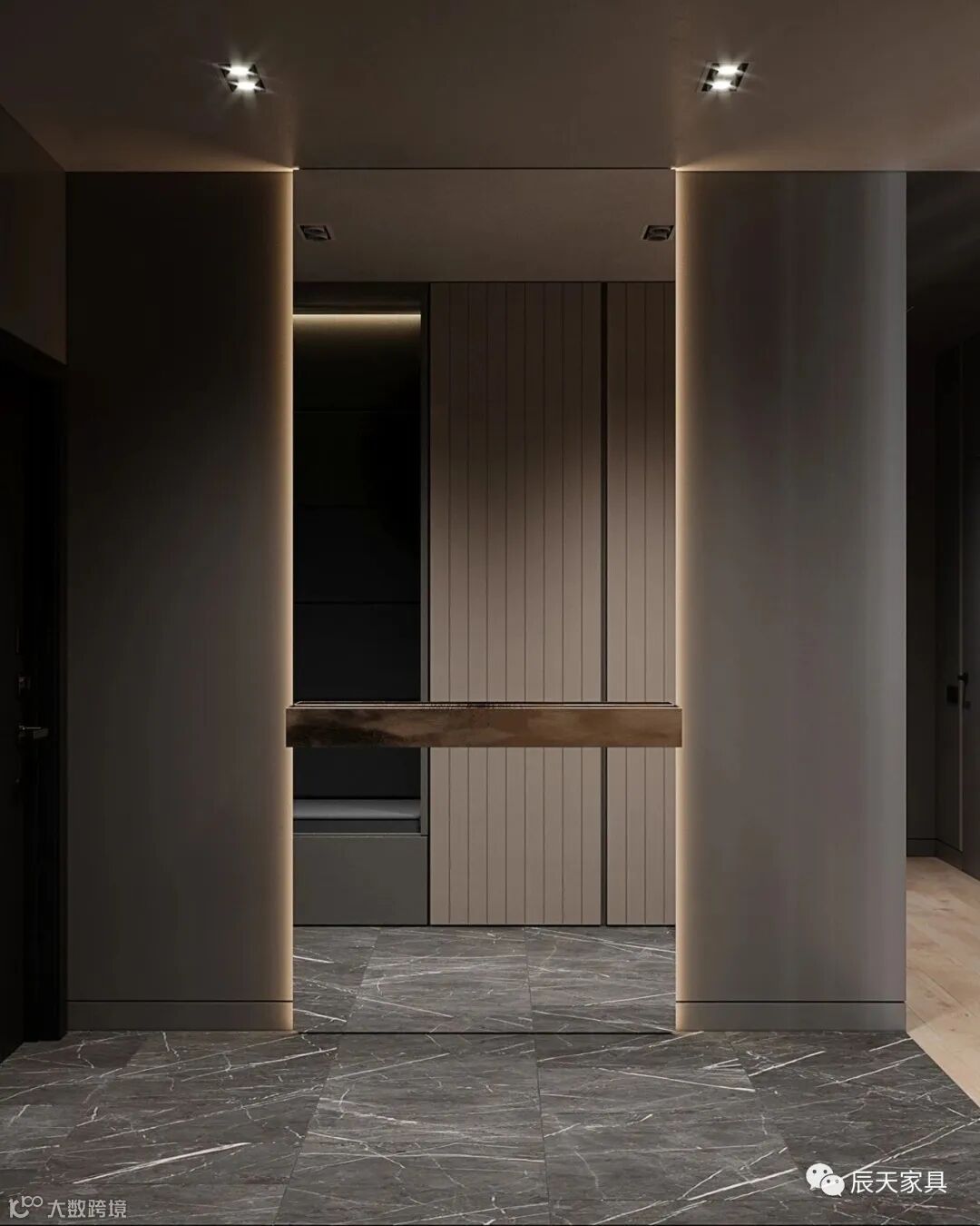 玄关,作为居室一个过渡区,需要兼备实用与美观的双重功能。干净、利落的线条,纯净的色调,让开门的第一眼,高级感便呼之欲出。合理的分区规划,让家里衣物物归其位,空间更显整洁、干净。