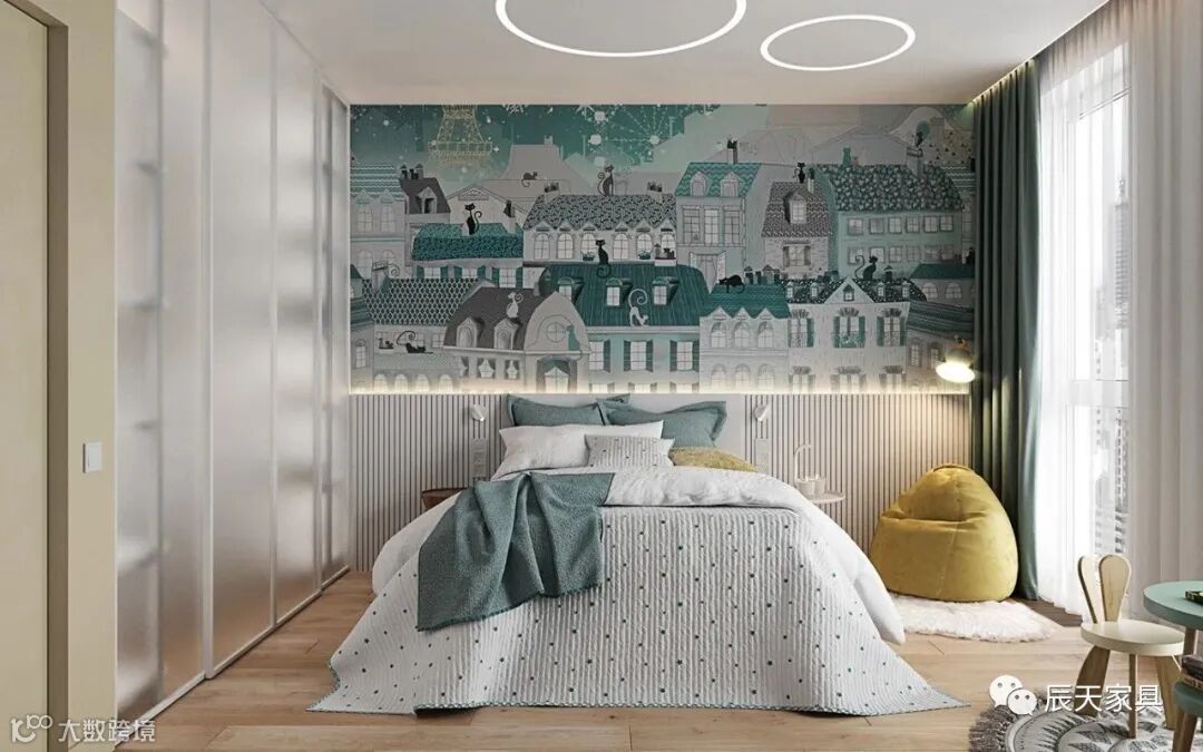 儿童房间以浅黄色和绿色搭配,冷淡中又不失少童心。