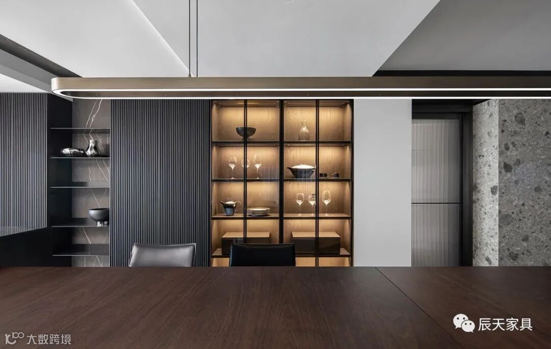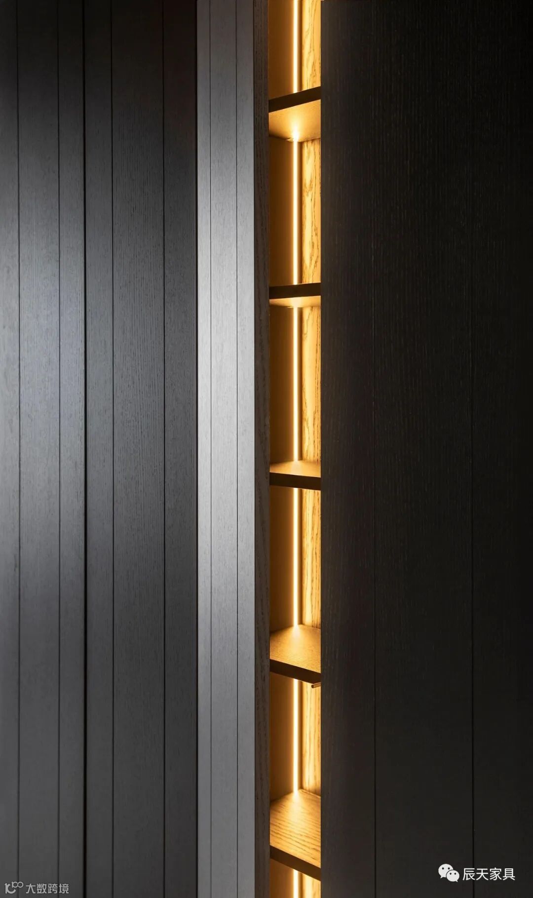 以线性灯架构,来理解材质中的脉络,加上立灯置入,表达空间想诉说的层次。