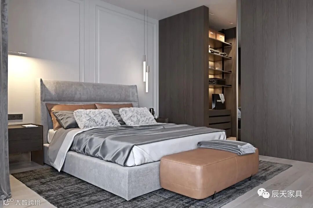 塑造出低调且华丽的卧室氛围。