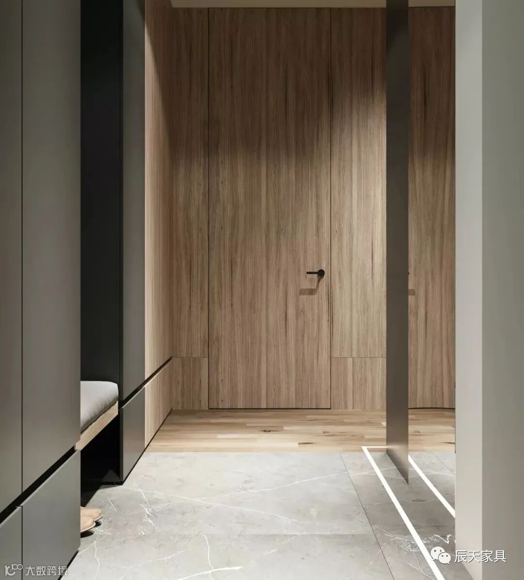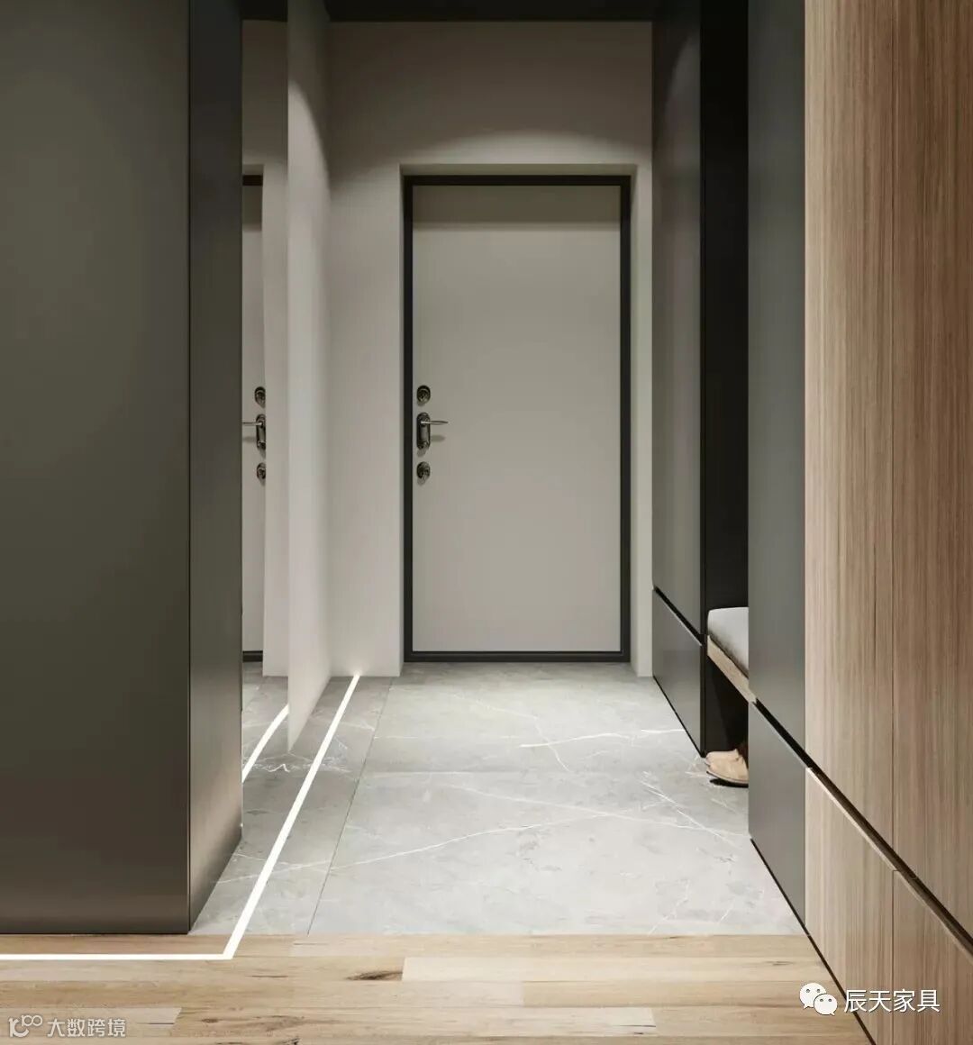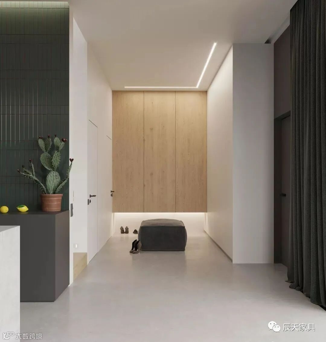 从嘈杂冰冷的外界回到家里,在玄关卸下重重的壳,抖掉身上的尘土,以一种最舒适最放松的状态进入室内,这才是家应该有的感觉。