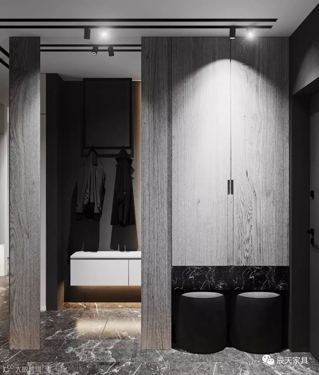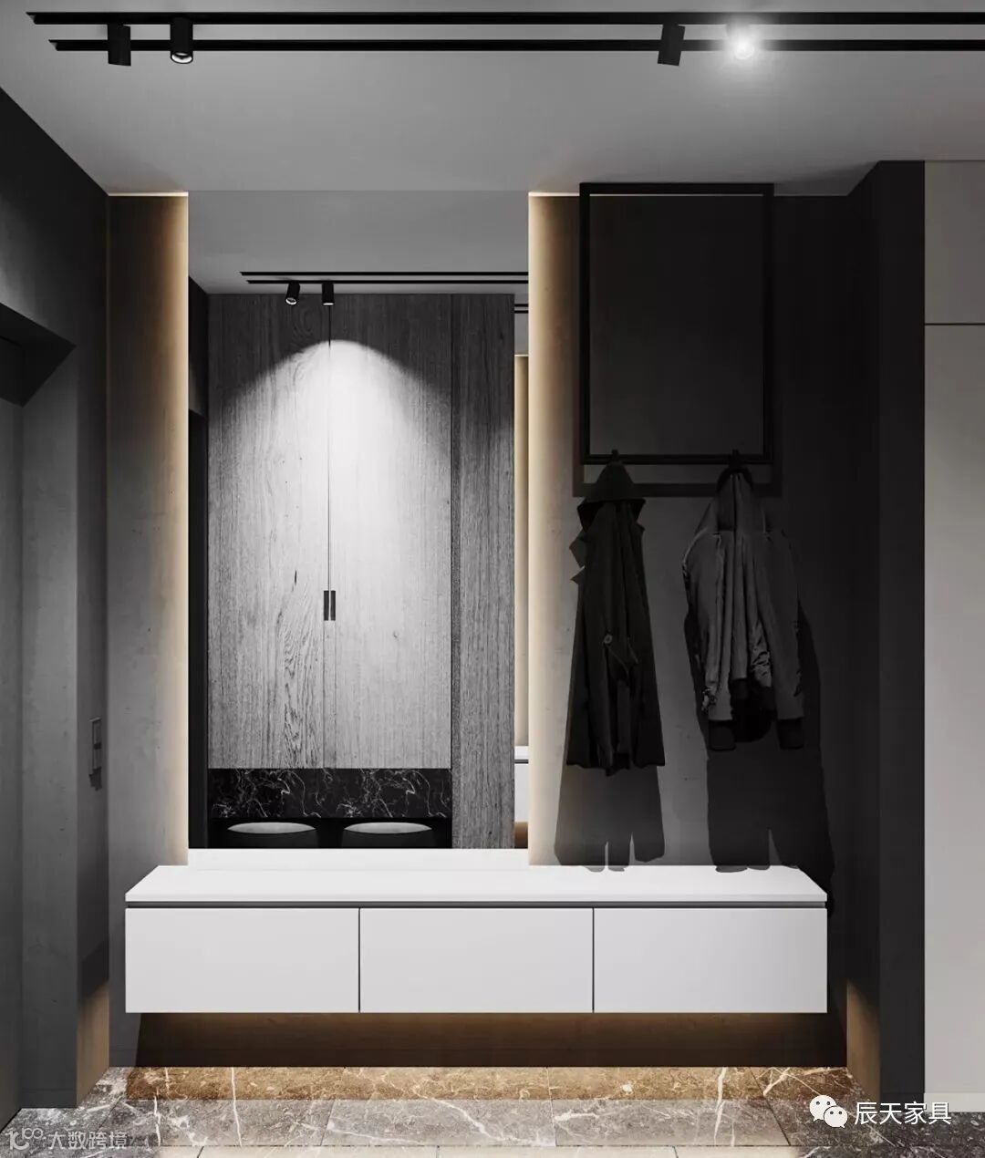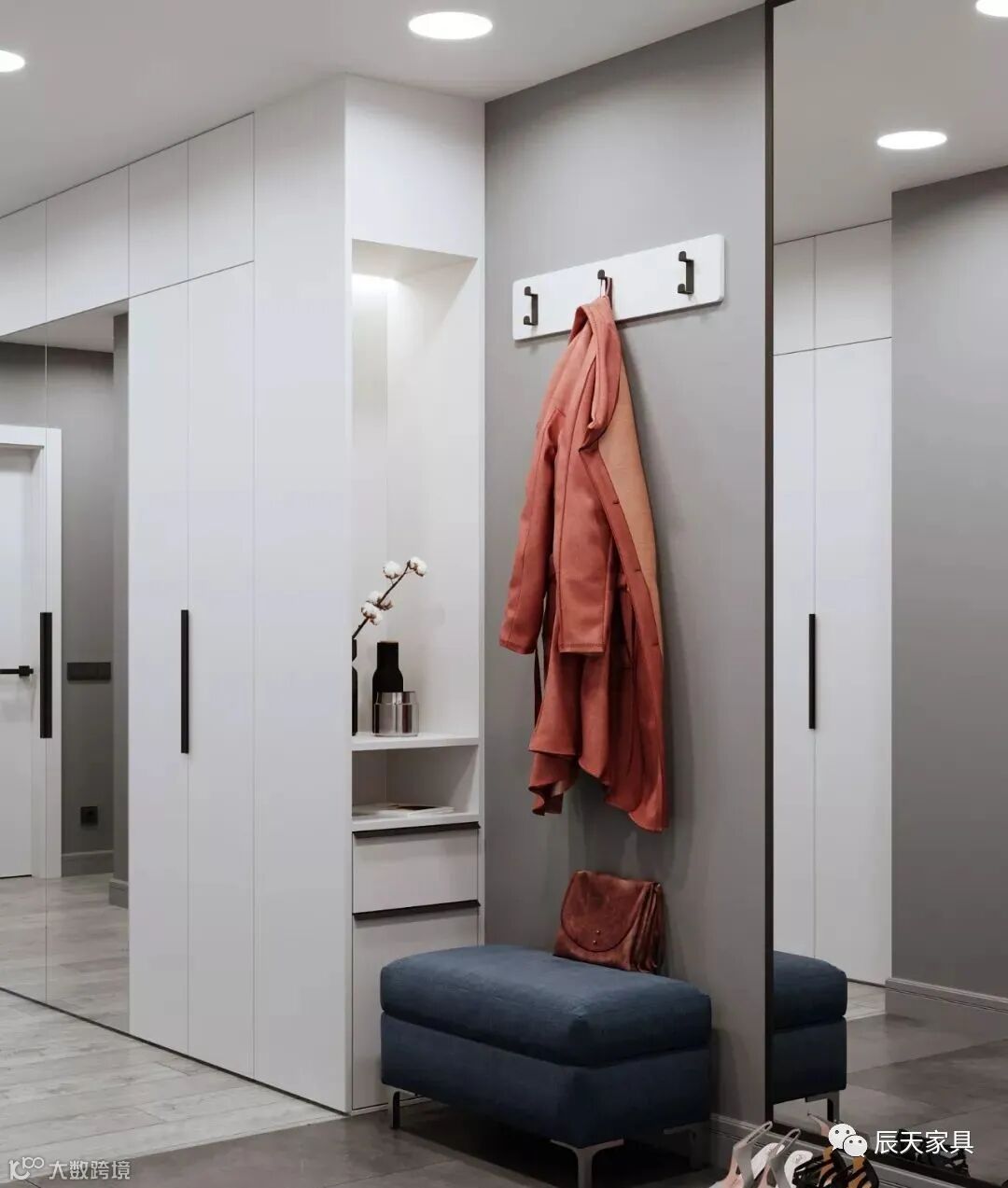 玄关是你进入家的第一个印象,离开家最后一个区域,打造一个实用性强并且充满情感的玄关区域,每天让你回家或出去的心情都是美美哒。