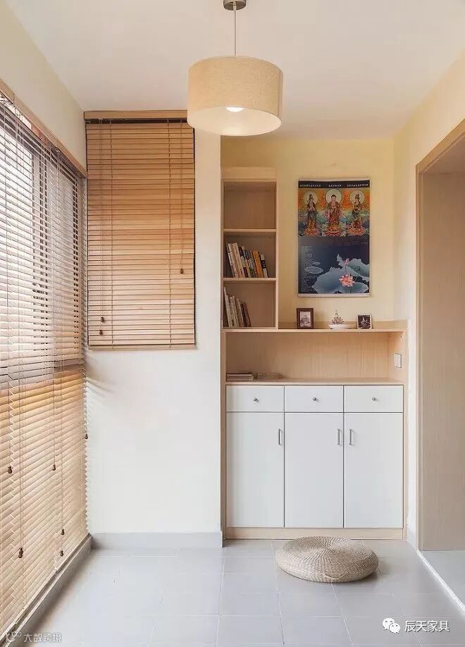 如果家里常住的人数不多的话,更建议只装隔板架,其它的比如板凳或挂钩就不要布置了,直接留白,这样既可以保持空间的通透,整个空间的视觉也会有扩充的效果。