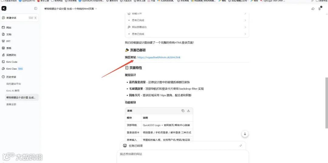 进入kimi官网,上传一个设计图,然后发送一个命令,如下图: