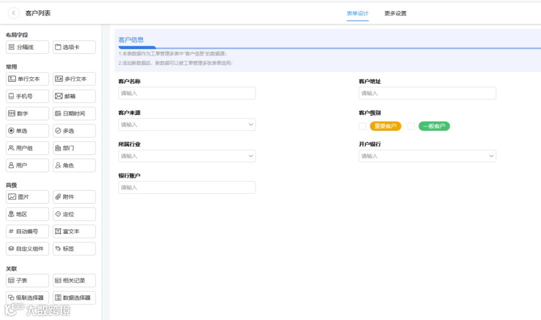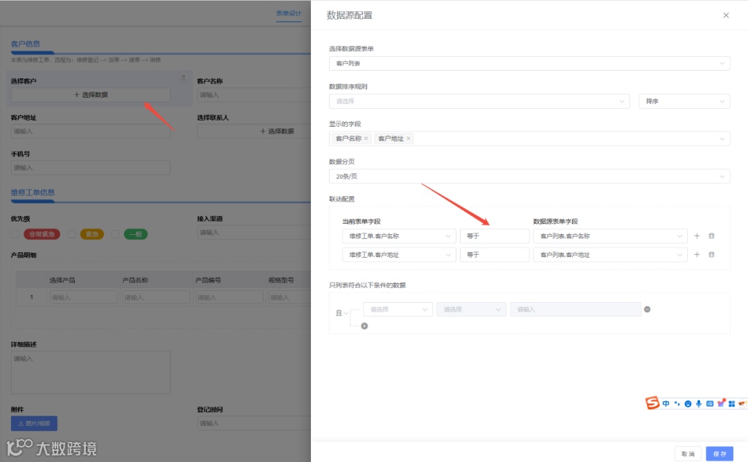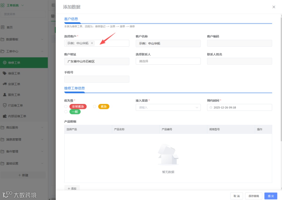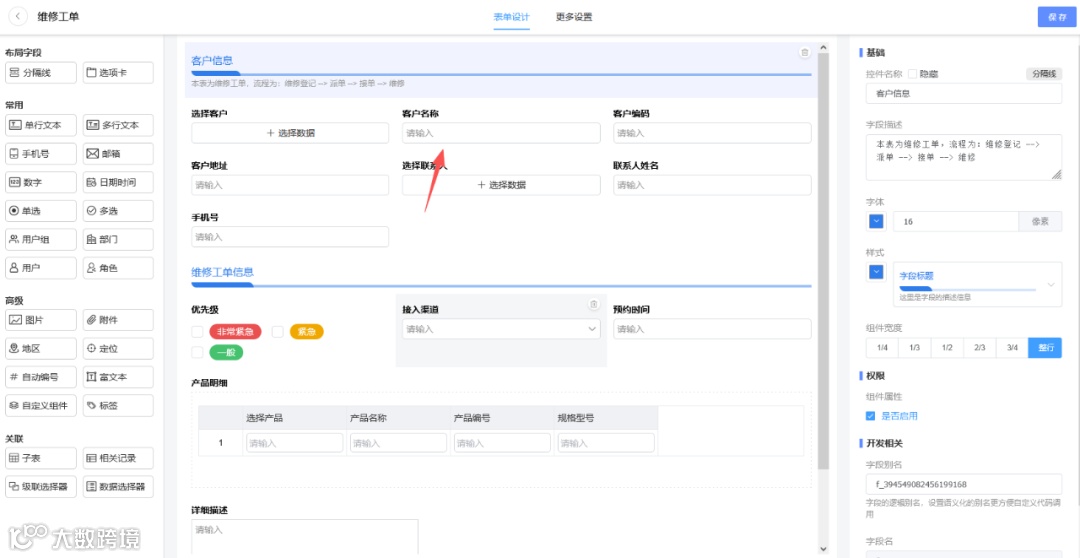 很多新手用户不知道数据联动作用,下面用一个制造行业通用的工单场景来演示这个功能:如何实现工单数据和客户数据的联动?
