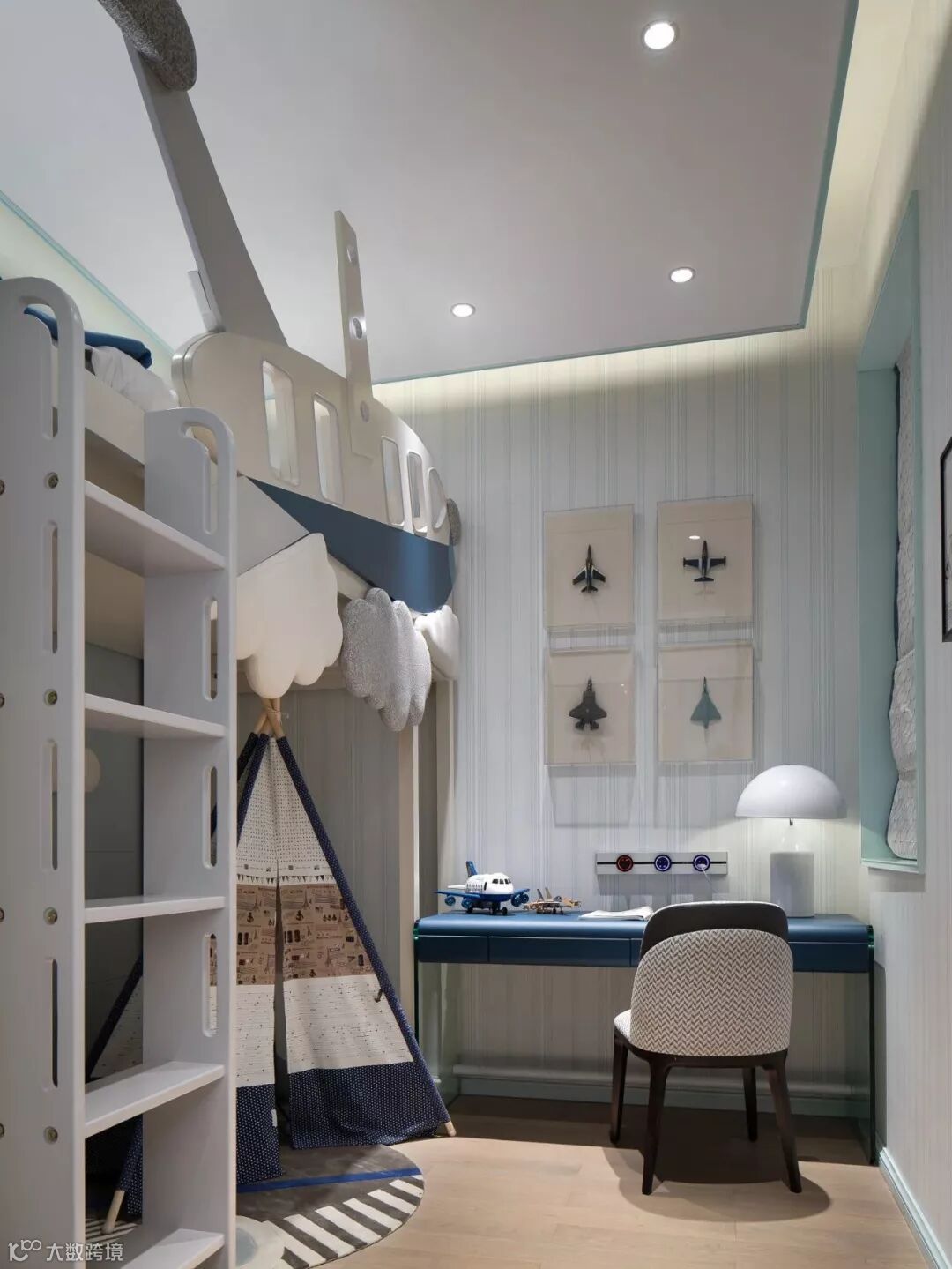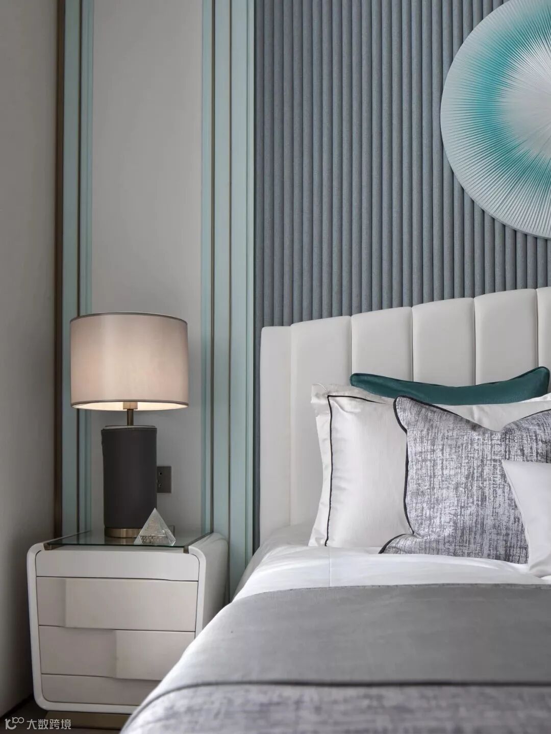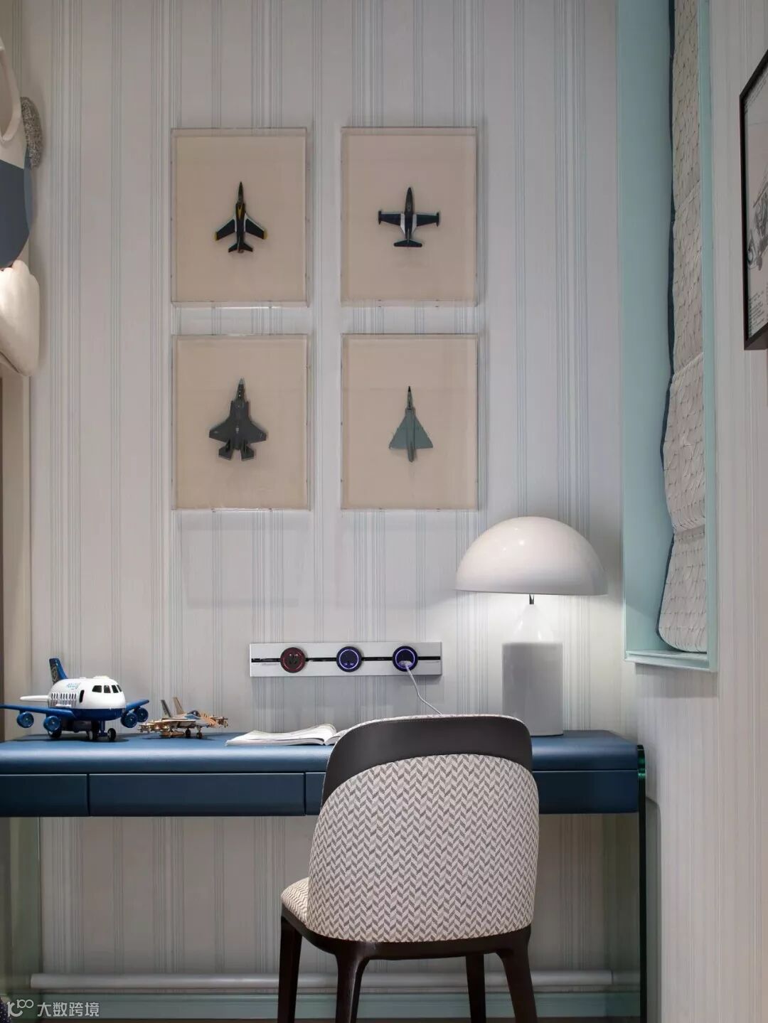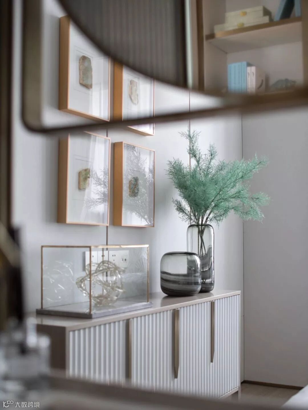 具有艺术感的花器与墙画迎合着蒂芙尼蓝
