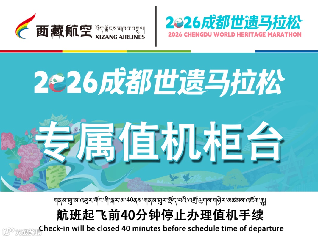西藏航空为2026成都世遗马拉松参赛者在成都双流国际机场T2航站楼N/M/L岛西藏航空值机区域设置了专属柜台,跑友们可凭参赛凭证享受高效便捷的赛前赛后权益。