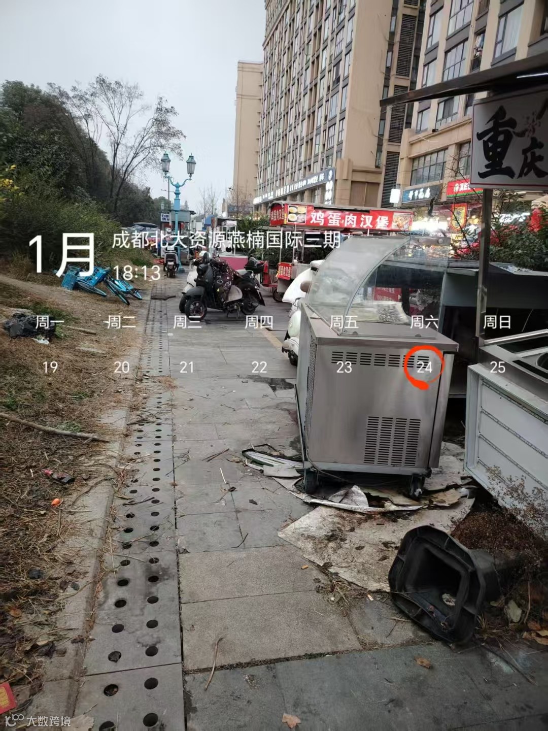 ⏰ 整改计划/完成时间:跟商家沟通及时将杂物清理