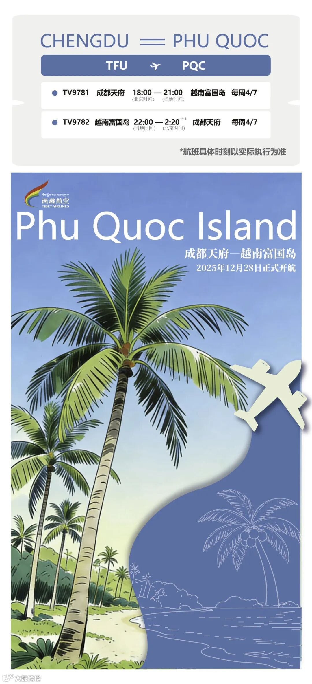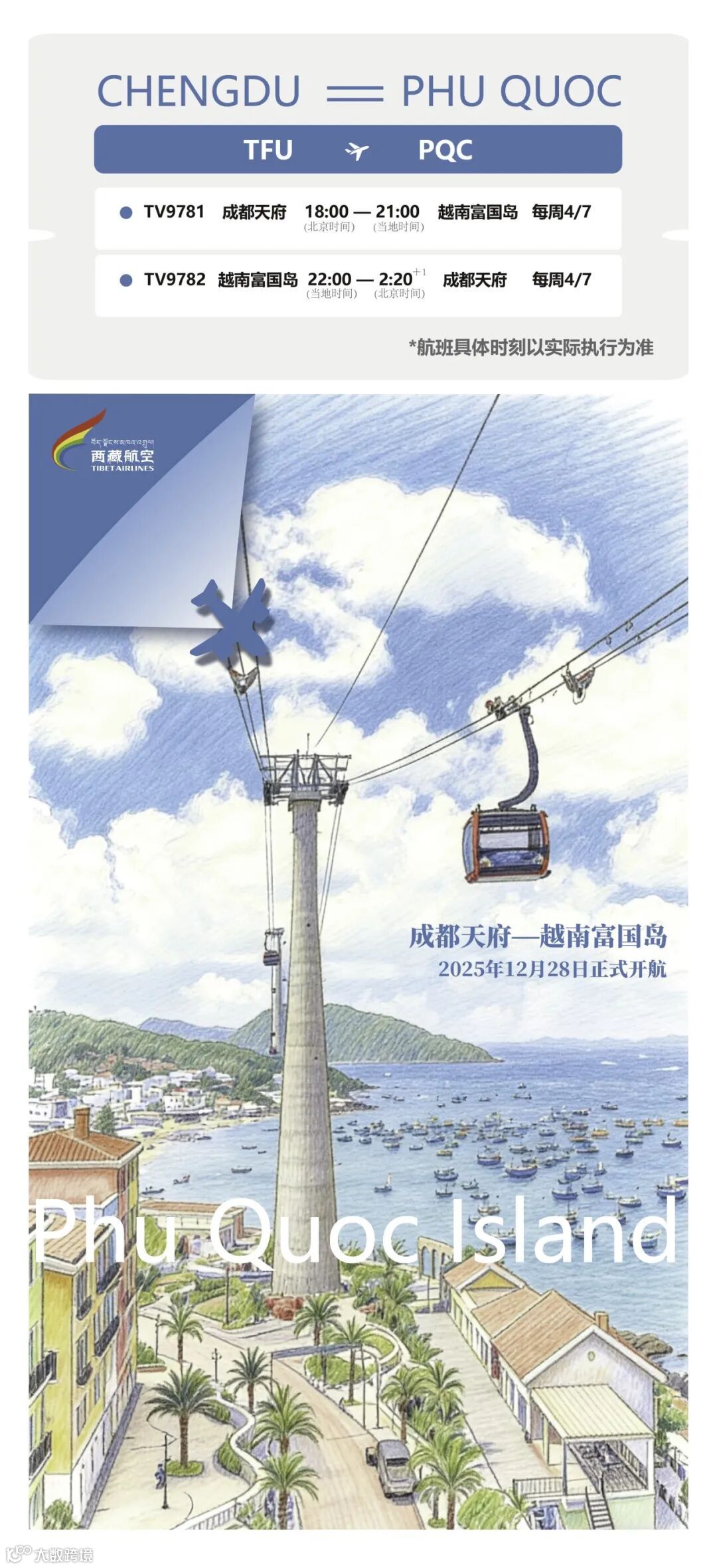 西藏航空“成都天府=富国岛”航线