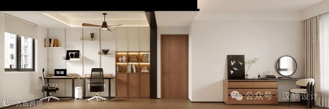 主卧做成一个套间,包含主卫、书房、衣帽间。
