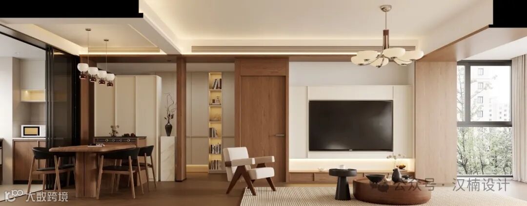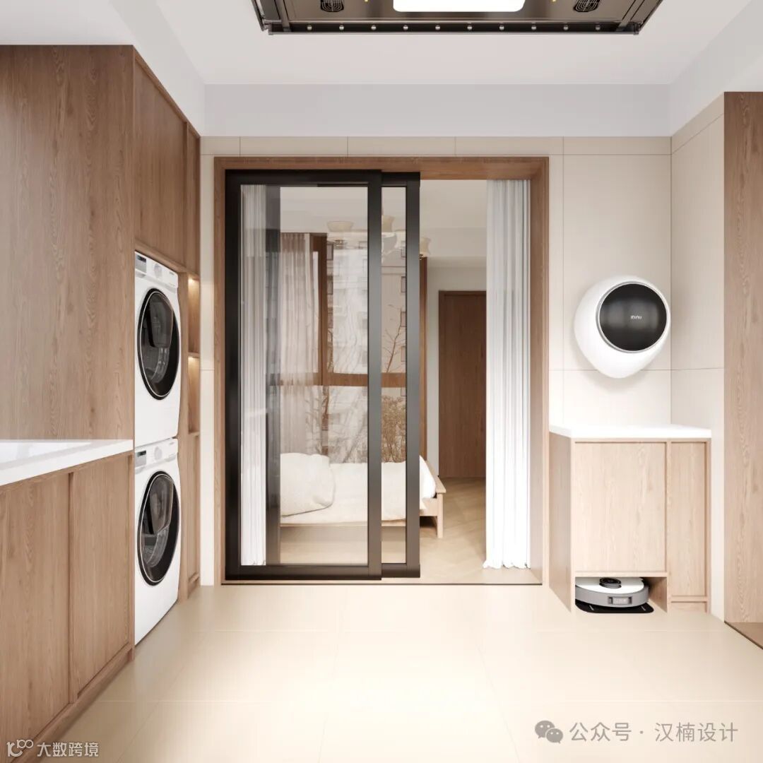 门厅做了一个动线调整,门厅出口方向与卧室通道对齐,同时避开餐区厨房动线,使得家中横向、纵向都通畅无障碍。
