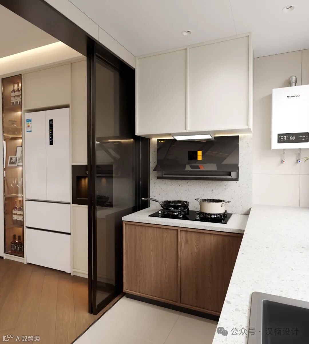 厨房做的是明厨,比较通透明亮,符合业主需求。