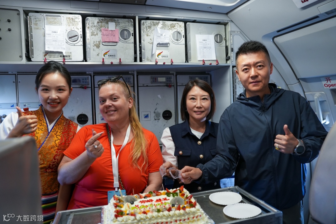 当日上午8时40分,首航航班从成都启程,搭载40余位来自“一带一路”沿线国家及西欧、东北亚、东南亚等地区的旅行商代表,以及来自祖国各地的旅客,飞向“西藏江南”林芝。冠名飞机化身为展示林芝风采的流动舞台,在万米高空开启了一场沉浸式体验。