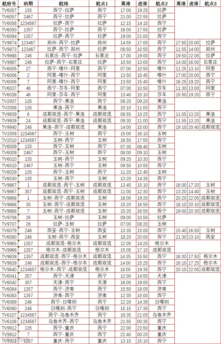 西藏航空青海航线
