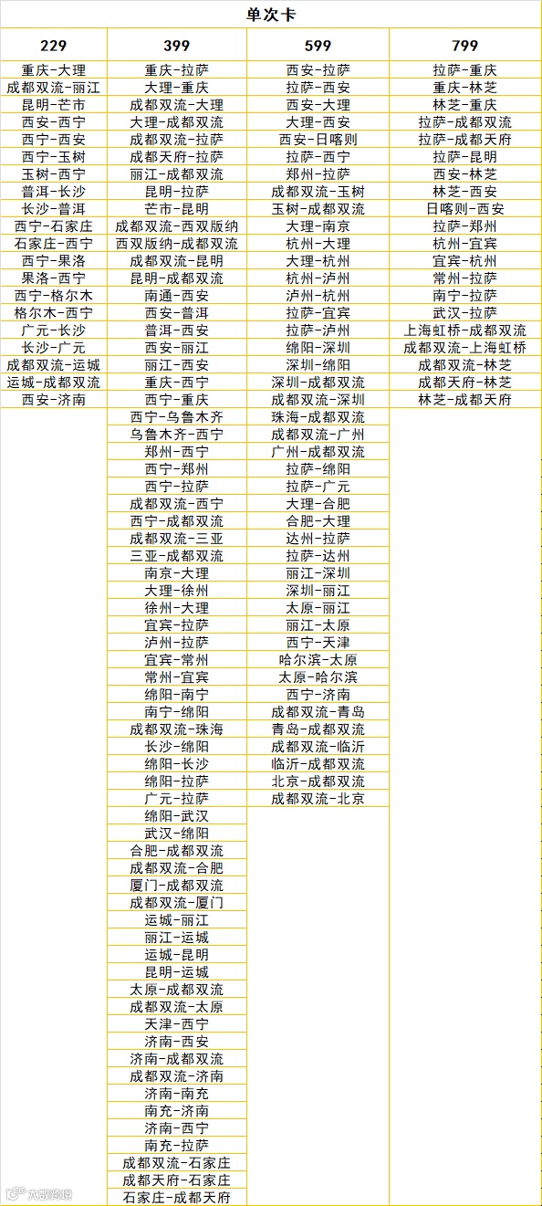 往返程航线为双向始发,如成都=拉萨,既可以兑换成都-拉萨-成都,也可以兑换拉萨-成都-拉萨。