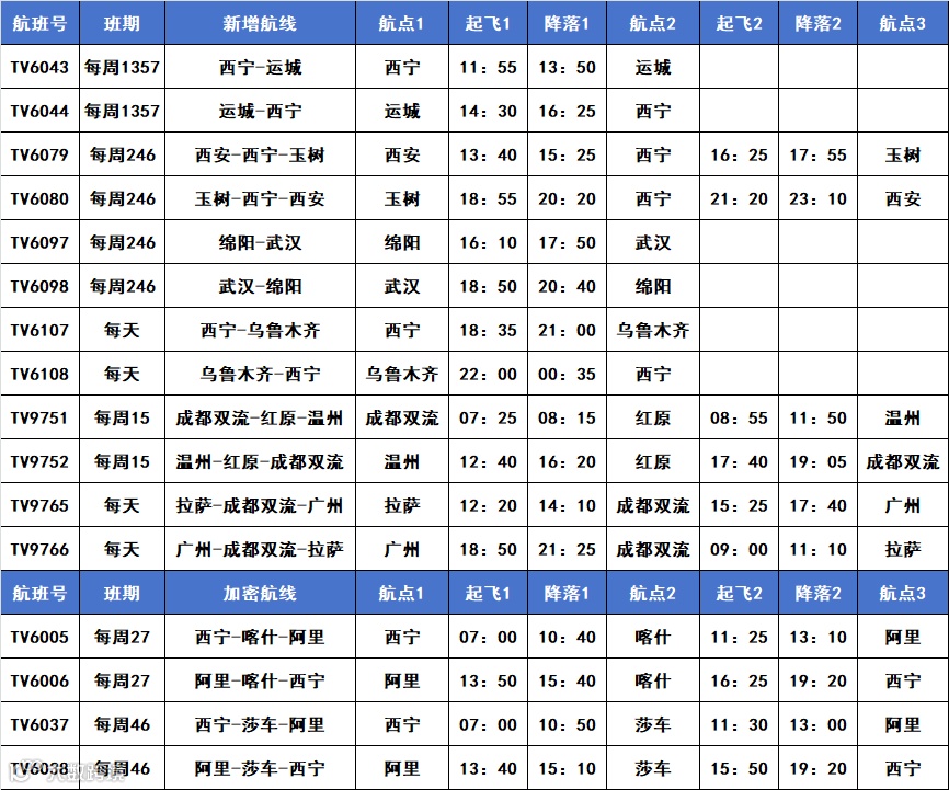 西藏航空2025暑运新增加密航线