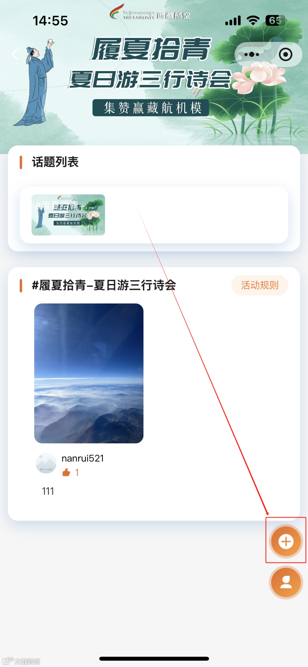 2.上传你的原创「夏日三行诗」+ 契合主题的高清美图(内容需围绕#夏日、#飞行、#西藏航空主题)。