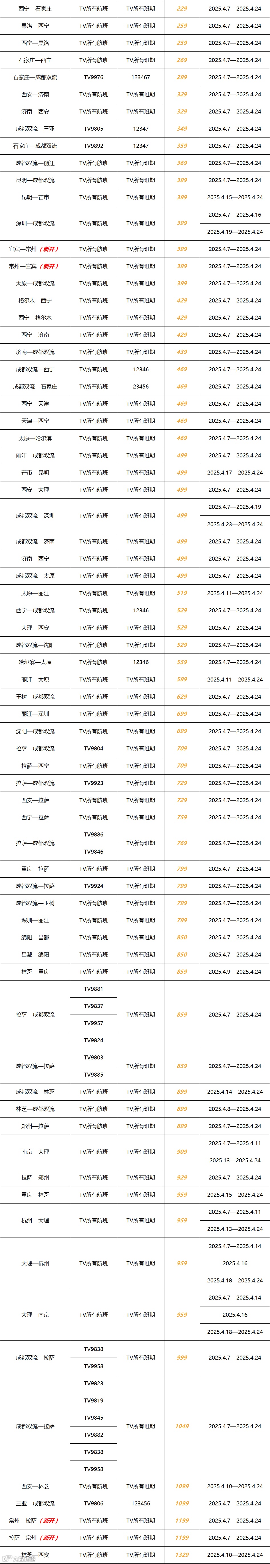 *预付费行李产品价格以西藏航空销售渠道实际显示为准。