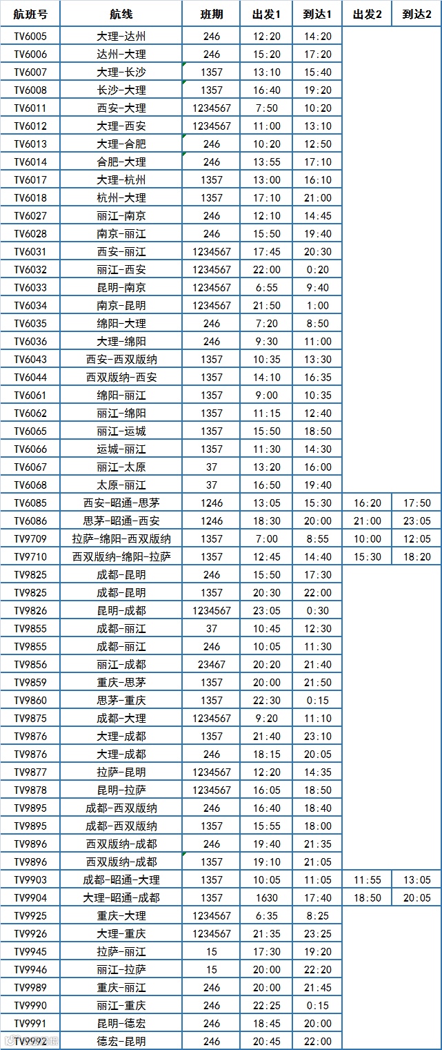 2024年西藏航空冬航季