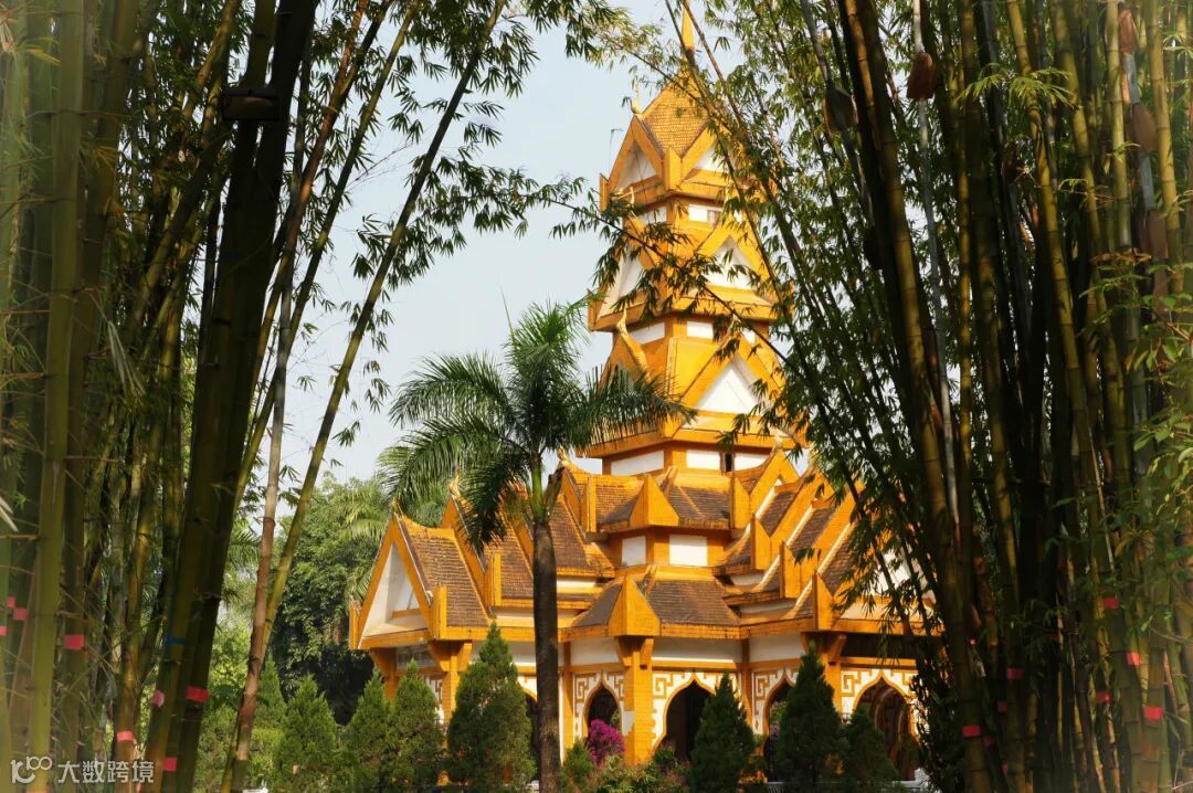 芒市的异域风情,金碧辉煌的勐焕大金塔在阳光下闪耀,和银塔交相辉映。