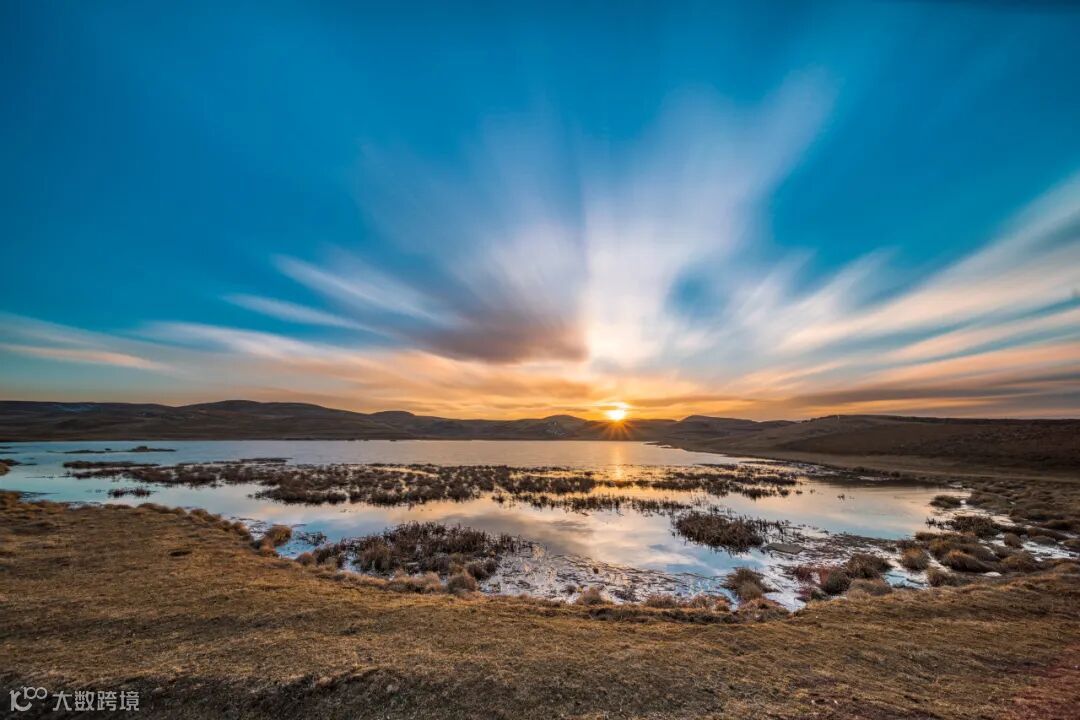 昭通的壮丽山河,大山包的云海翻腾,黑颈鹤在天空中优雅地飞翔。