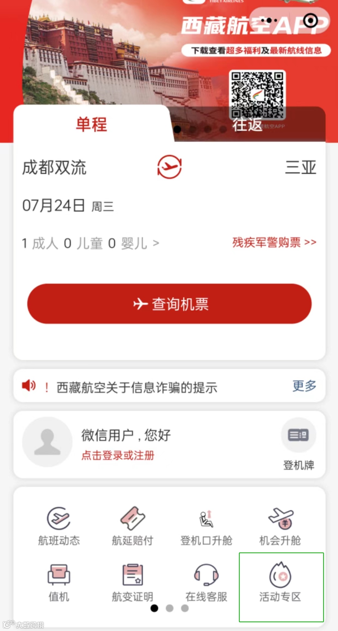 西藏航空官网、微信小程序