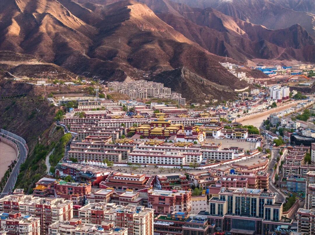 ▲强巴林寺位于卡若昂曲和杂曲两水交汇处,是西藏昌都最大的寺院。